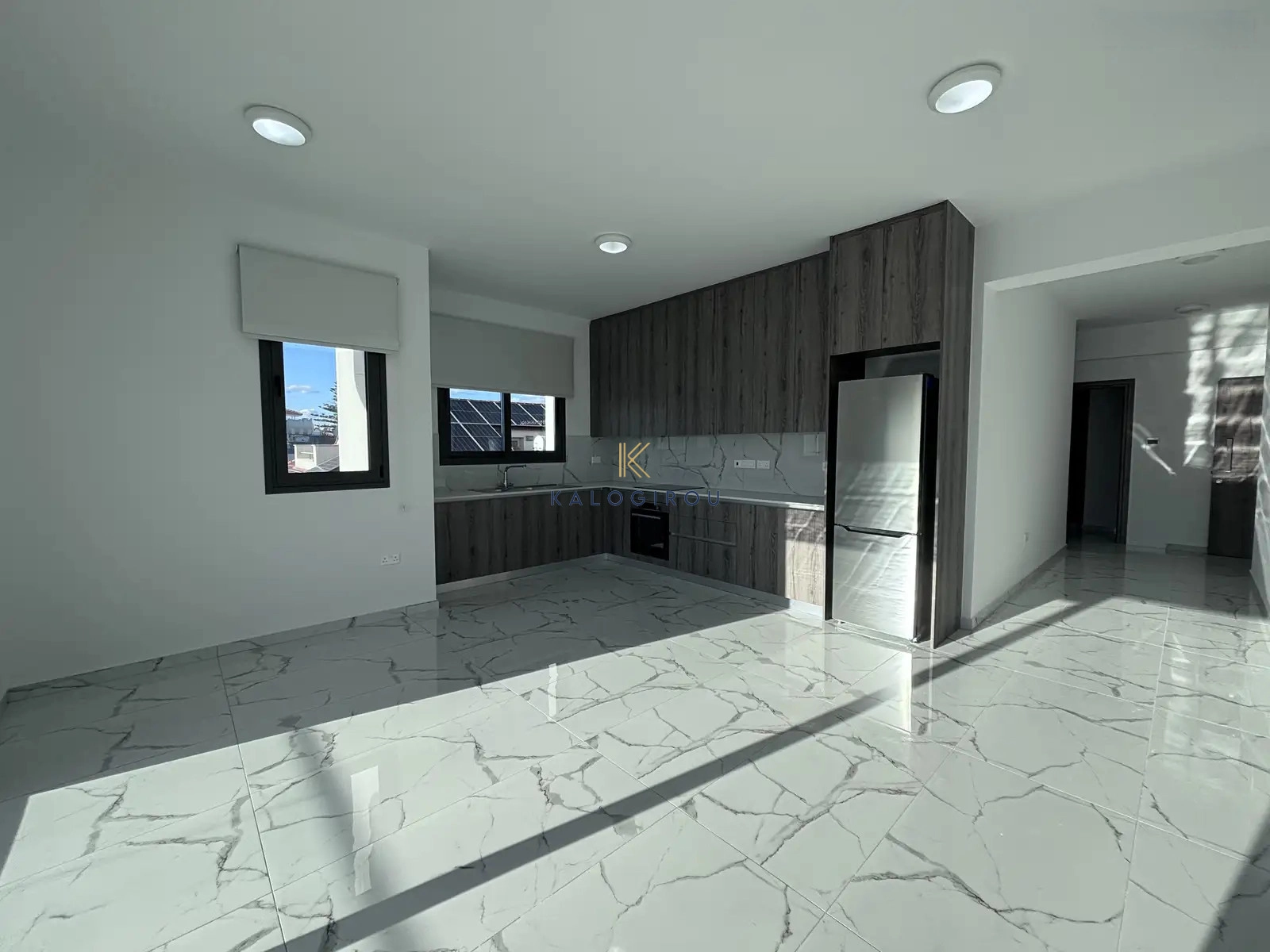 Apartment for rent in Aradippou area, Larnaca. The property consists of 2 bedrooms, open plan kitchen, living room, 1 bath, 1 shower en-suite, 2wc, covered verandas, covered parking, un- furnished, kitchen appliances.