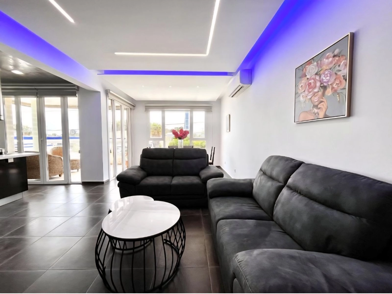 This 2-bedroom apartment in Agios Athanasios, Limassol is available for rent and offers a prime beachfront location opposite Columbia Beach, with beautiful sea views and immediate access to the beach, restaurants, and all essential amenities.