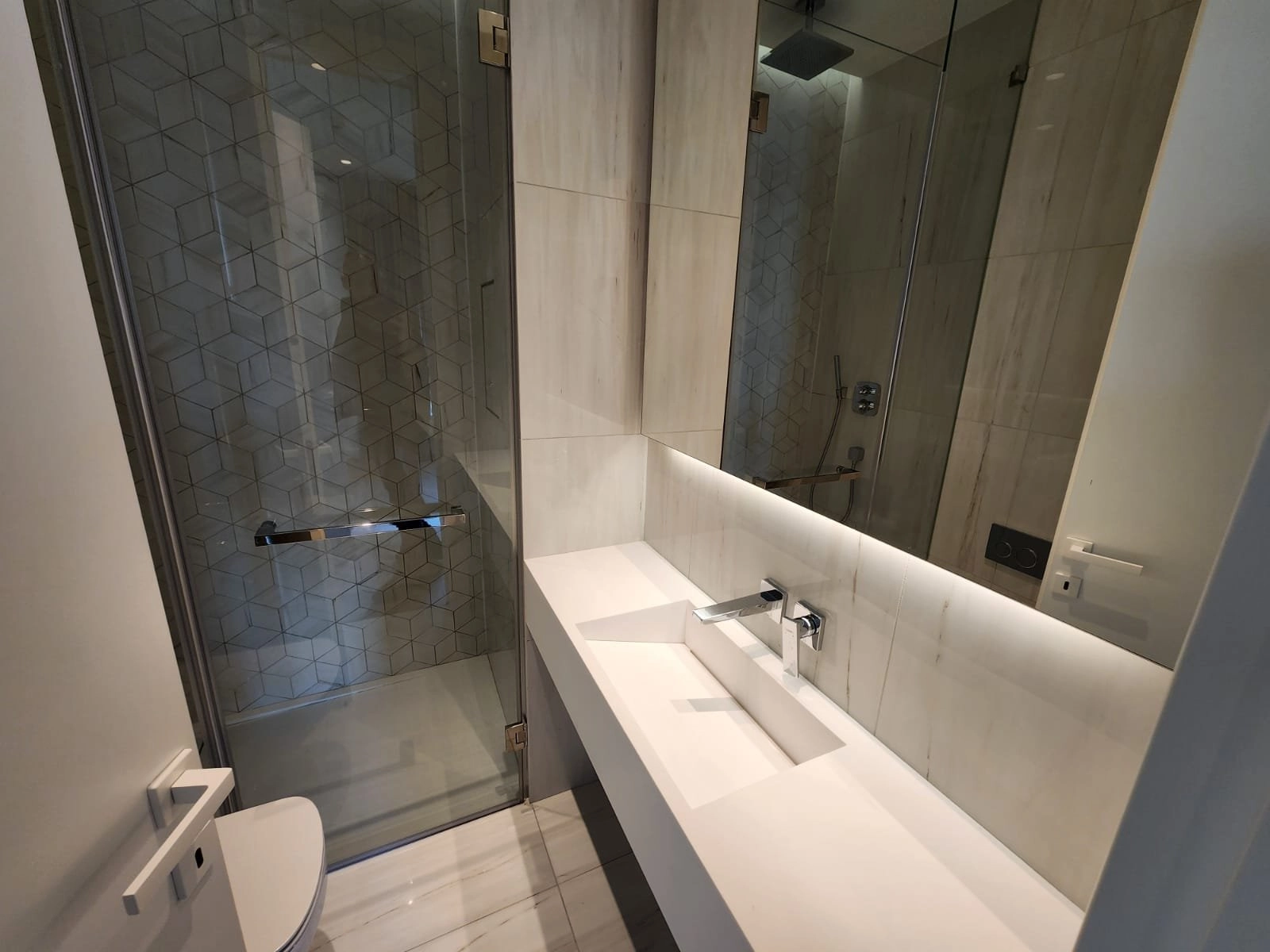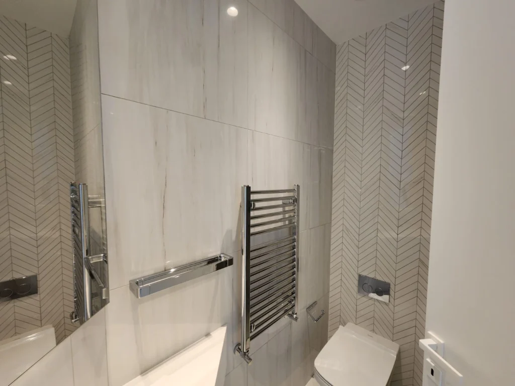 The three bedrooms are generously sized and designed to ensure privacy and comfort, featuring fitted wardrobes and high-quality finishes. The master bedroom benefits from an en-suite bathroom, adding an extra level of convenience and exclusivity.