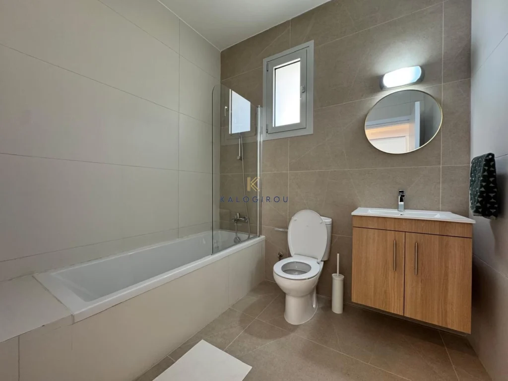 Apartment for rent in Drosia area with an internal covered area of 114 sq.m. and an additional 24 sq.m. of covered verandas. It consists of an open-plan kitchen, living and dining area, two bedrooms, and a family bathroom. The apartment is fully furnished and fully equipped.