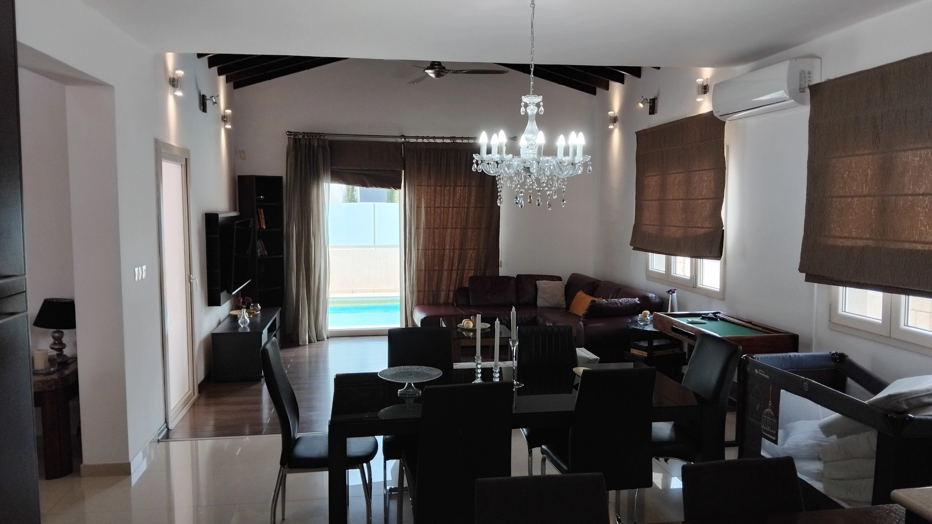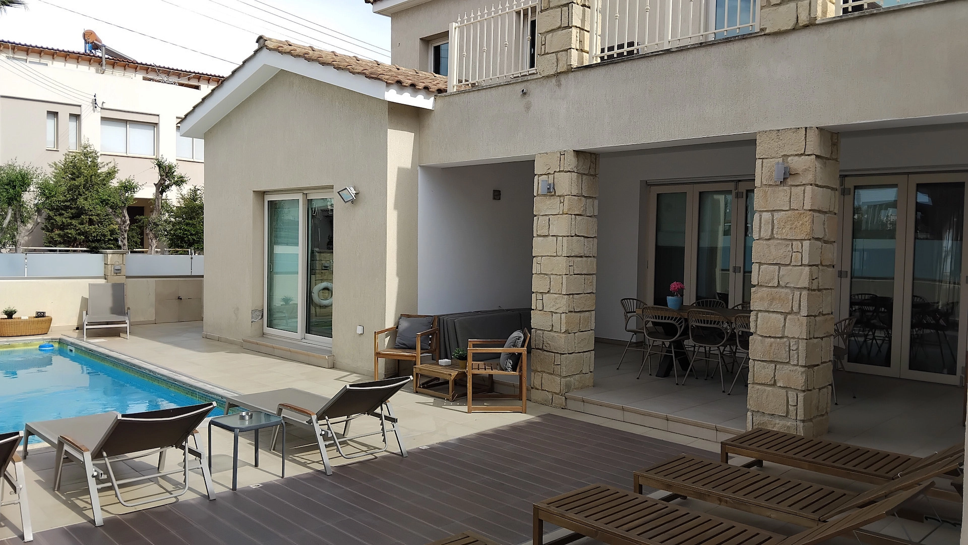 Yes, the property features a private swimming pool and a spacious garden, ideal for entertaining or relaxing.