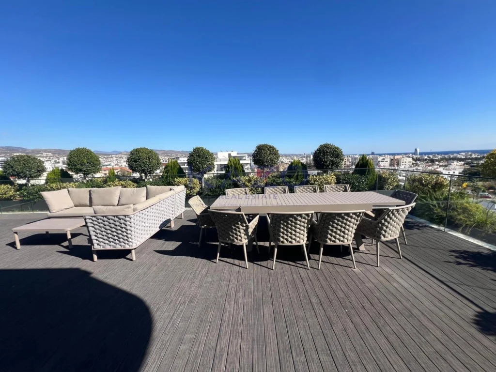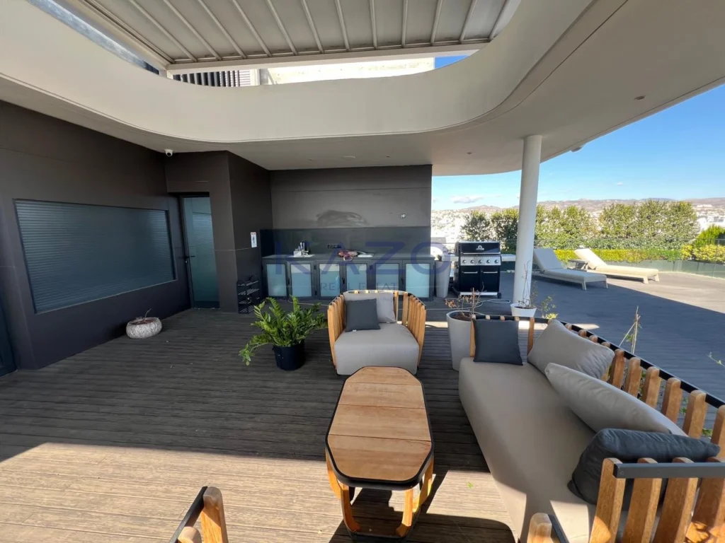 Available for rent is a modern, key-ready penthouse apartment in Mesa Geitonia. This spacious home offers 146 m² of internal space, featuring three well-sized bedrooms and three contemporary bathrooms. Located in a well-maintained gated complex, the penthouse is accessible by elevator and provides a secure, private living environment.