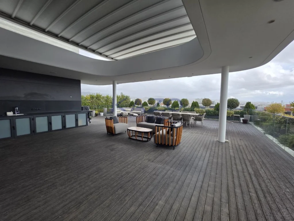 This southeast-facing residence boasts breathtaking city, sea, and mountain views from every angle. Mesa Geitonia is a popular and convenient area, known for its friendly atmosphere and easy urban living. Residents benefit from quick access to the highway and local amenities such as shops, restaurants, schools, and parks, all within a short distance.