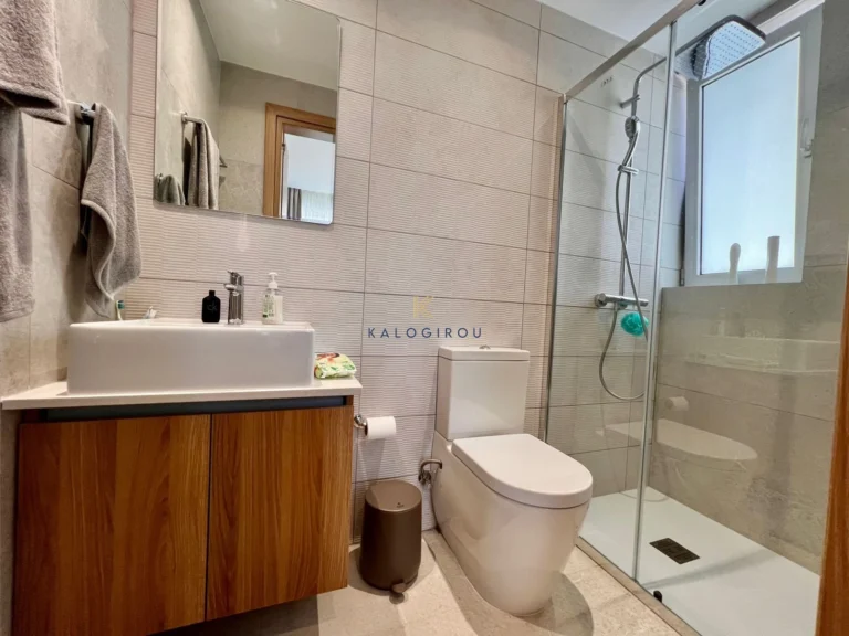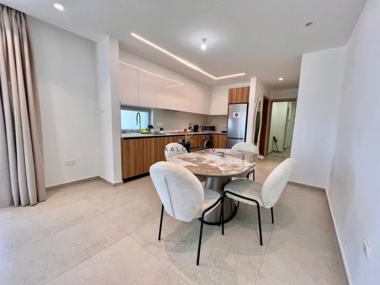 Apartment for rent in Makenzy area, Larnaca. This beautiful apartment consists of an open plan kitchen and living room with dining area, two bedrooms, two en-suite shower in the bedrooms, one guest toilet, full A/C, storage room, covered and uncovered veranda and covered parking. The area of the property is characterized as touristic.