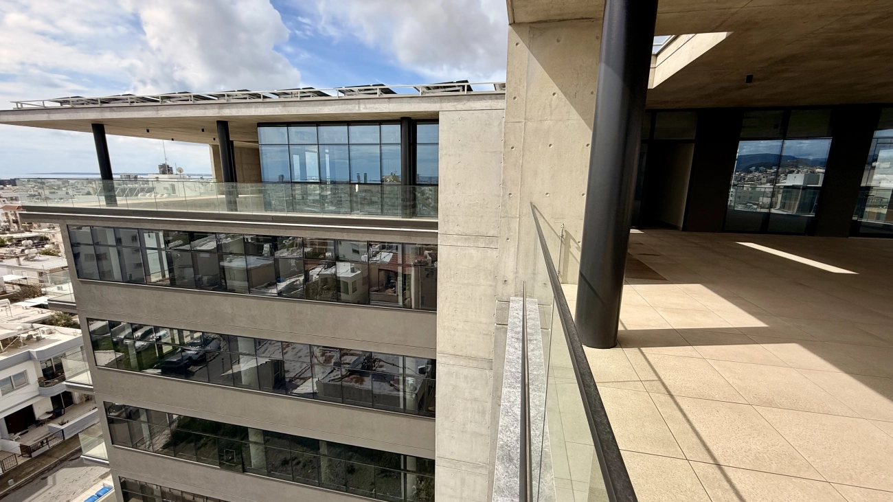 Office space for rent in the Mesa Geitonia area of ​​Limassol, occupying the entire third floor. The space is designed using modern architectural solutions, includes high ceilings (3.20 m), central VRV air conditioning and forced-air ventilation, thermo-aluminum window frames. Energy-efficient building with photovoltaic systems in each office. There is a spacious private veranda (55 m2) with panoramic views of the city. The following common facilities are included in the price: an elegant reception area and concierge service (Monday to Friday, from 07:00 to 21:00); an on-site security guard (outside reception hours (evenings, nights, weekends and holidays), a common roof garden and recreation area; CCTV; 10 parking spaces.