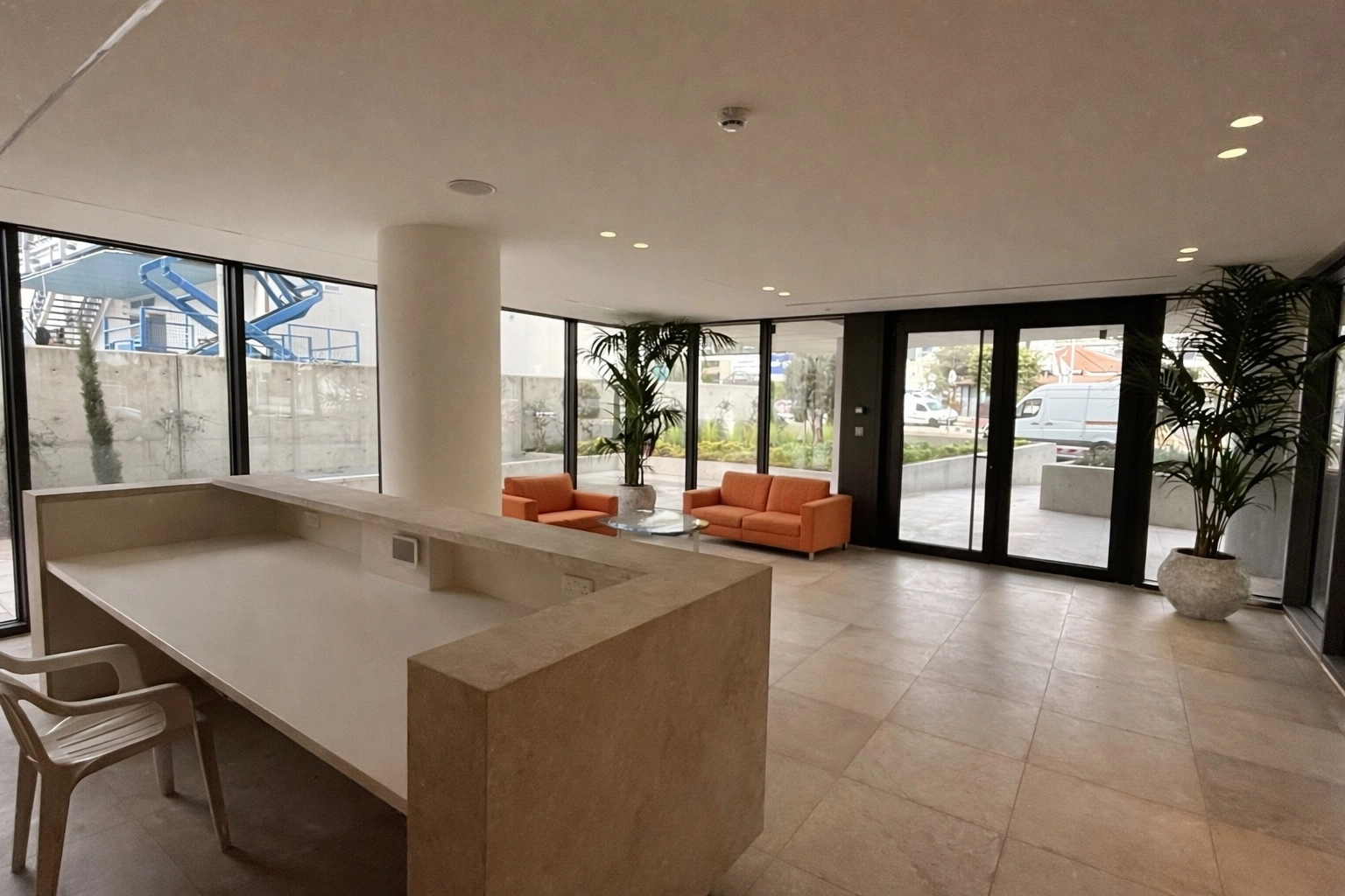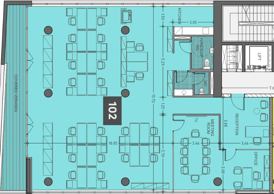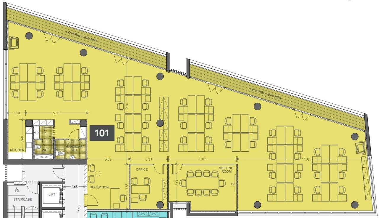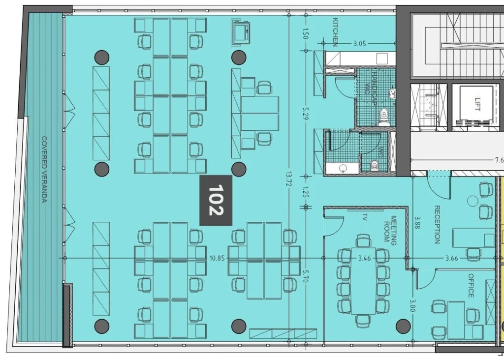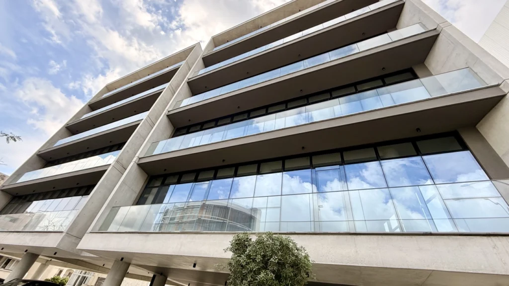 Office for rent with a total area of 634 m2, including a veranda of 55 m2, in the area of Mesa Geitonia, Limassol, in a modern office building located on one of the main business streets of the city with convenient access to the City Center, Limassol Marina and motorway. The spacious and functionally designed office occupies an entire floor, includes a common reception area, an elevator, ten parking spaces and a shared roof garden. The office is made with high-quality class A finishes and is ready for immediate use. It includes a spacious private veranda with panoramic views of the city, high ceilings of 2.90 m, raised floors with carpet in the work areas, ceramic tiles on the floor and walls in the bathrooms, anti-slip tiles on the veranda, air conditioning and ventilation in each room, alarm system, a fire-fighting entrance door with an intercom system, aluminum windows with double thermal glazing, European-brand plumbing fixtures, high-end kitchen furniture with all necessary appliances and photovoltaic panels to increase energy efficiency.