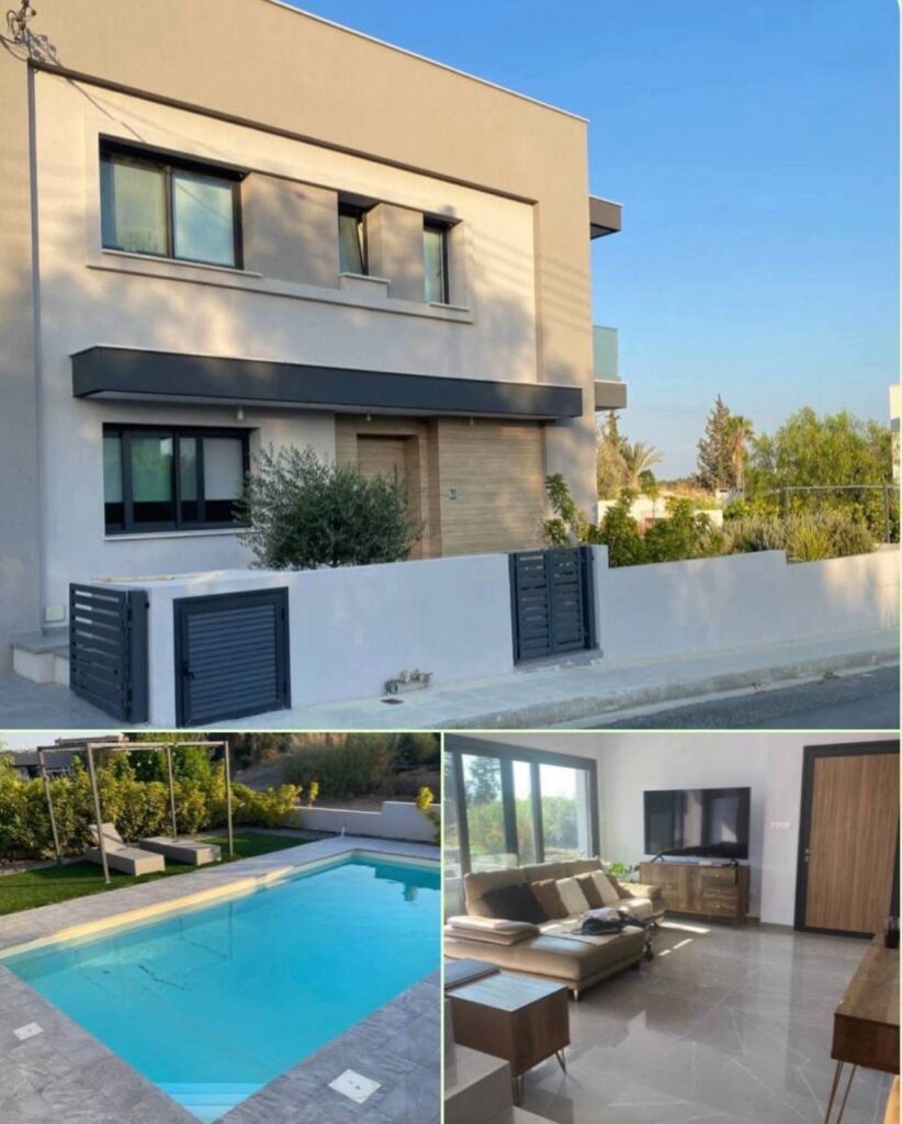Rent Limassol Parekklisia separate new house 3 bedrooms 3 bathrooms pool, heated floors, solar panels, fireplace, plot 450m2, €4,200 owner.