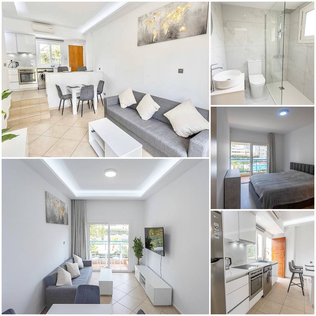 1170 RENT Limassol Apartment 55m2 Location: Potamos Germasogeia Not far from METRO supermarket 100m to the sea Year of construction 2005 Gated complex Floor:1 1 bedroom 1 bathroom (shower) Air conditioners Double glazed windows Solar panels Balcony In the complex: Pool, garden, tennis court Open parking Price 1450€ LN56,RN186