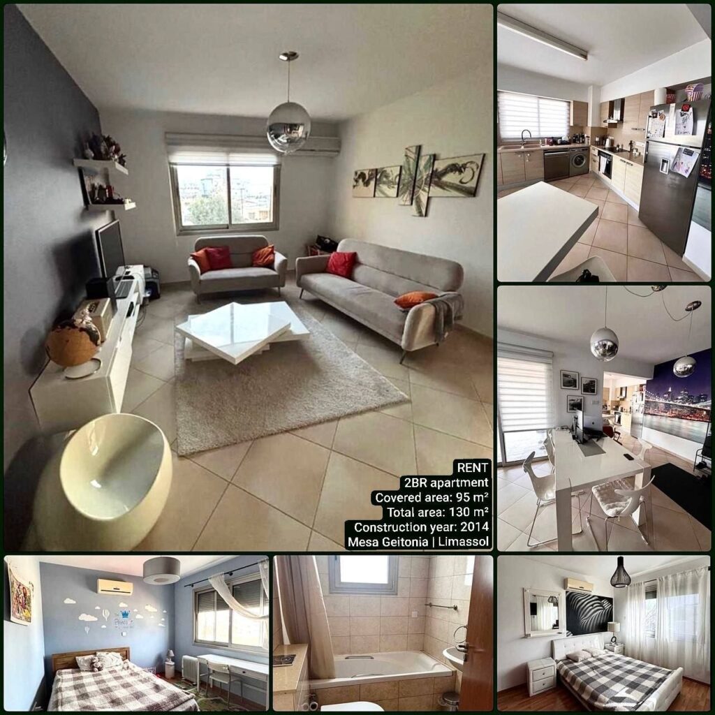 Rent. Spacious 2 bedroom apartment in the Mesa Geitonia area, Limassol. All infrastructure within walking distance, not far from Superhome. 2nd floor. Living area: 95 m². Total area: 130 m². Kitchen. Living room. 2 bedrooms. Bathroom + guest toilet. Veranda: 35 m². Storage room. Parking for 2 cars. Year of construction: 2014. Pets allowed. Price: 1,600 including common expenses + 1 deposit. Agency CULPRO Estates Ltd L.N 197/E R.N 1189 +357 95109900 +357 95592209 A312
