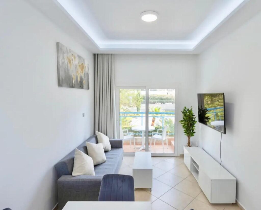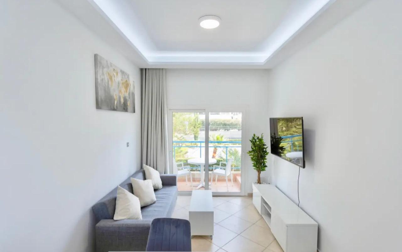 FOR RENT LIMASSOL — GERMASOGEIA TOURIST AREA 1 bedroom | 55 m² | €1,450 / month Modern one-bedroom apartment just 100 meters from the beach, located in the prestigious Germasogeia tourist area. ✅ Bedroom: 1 ✅ Bathroom: 1 ✅ Area: 55 m² ✅ Floor: 1 ✅ Energy efficiency: A ✅ Fully furnished ✅ Modern renovation ✅ Balcony ✅ Double glazing ✅ Solar panels for water heating ✅ LED lighting ✅ Large swimming pool ✅ Tennis court ✅ Garden and barbecue area ✅ Parking (not covered) ✅ Between Del Mar and Sky Tower 💰 Price: 1450 € / month Reg: AM: 1256/AA258/E