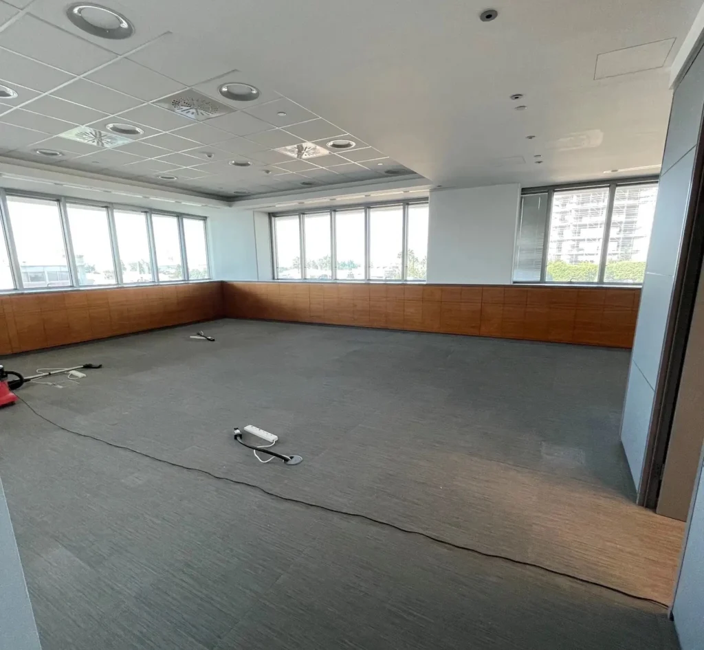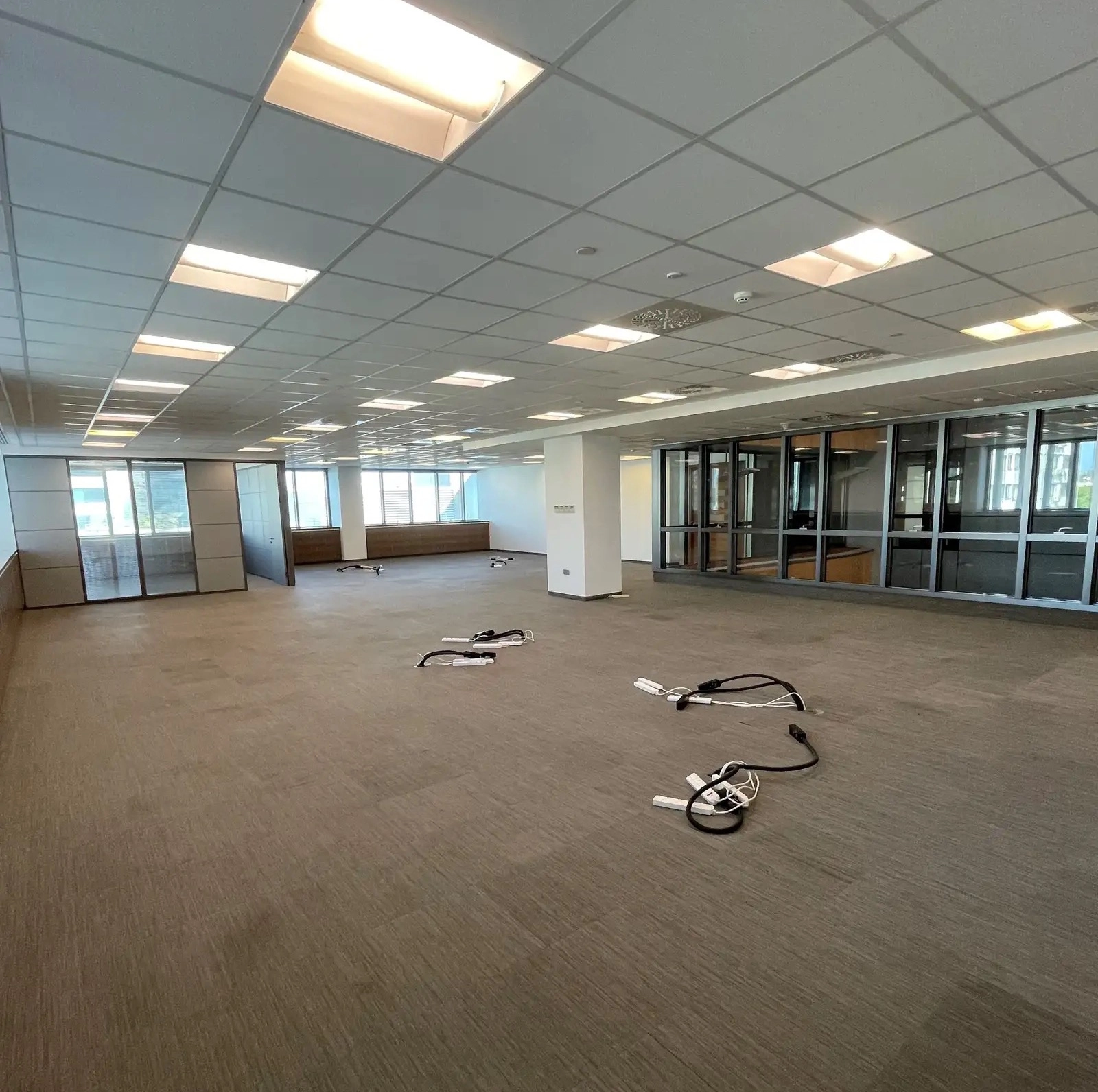 Office space of 583 m2 for rent in Omonia, Limassol. The office includes a spacious workspace, access to common areas of the building such as the lobby, bathrooms and kitchen with a total area of 172 m2, as well as the use of the ground floor infrastructure of 800 m2, including reception, conference and meeting rooms.The office space is equipped with an alarm system, high-speed fiber-optic Internet and CAT7 cable system, the building has an elevator, access control system, CCTV video surveillance, fire and burglar alarms, as well as sports and wellness areas with showers and changing rooms. The property is located in a certified energy efficient Class A building with the Eco-Label Green Office environmental standard. The rental price includes 8 parking spaces with the possibility of renting an additional 28 parking spaces. The facility is located in a prestigious location at the Limassol port traffic lights intersection in the Omonia area, which provides convenient access to the main transport arteries of the city.