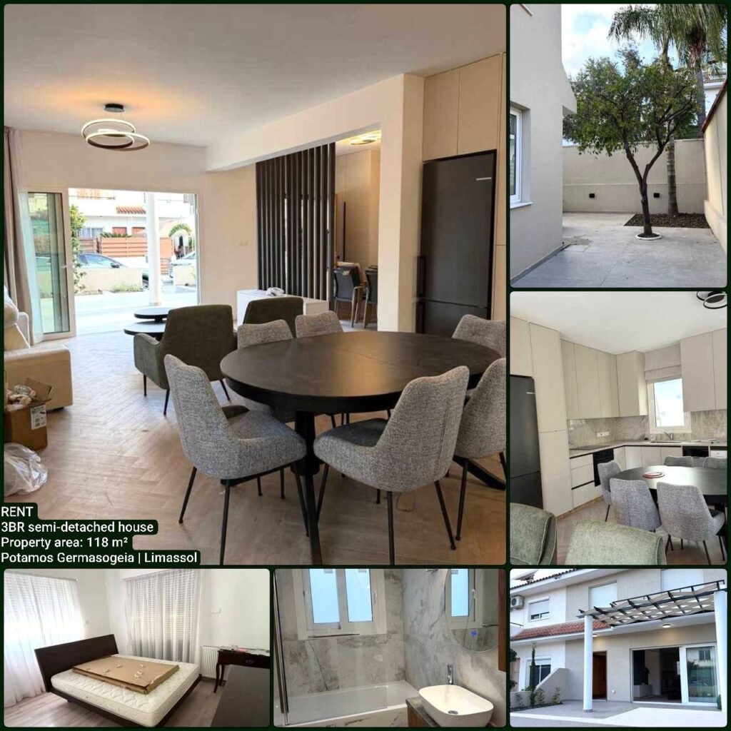 Rent. For occupancy from mid-April 2026, can be viewed. 3-bedroom house with shared walls in the Potamos Germasogeia area, Limassol. All infrastructure and the beach are within walking distance, not far from the Apollonia hotel. Kitchen (new appliances). Living room. 3 bedrooms. Bathroom + guest toilet. Veranda. Garden. Covered parking. Electric gates and a security alarm will be installed. Price: 3,000. Agency CULPRO Estates Ltd L.N 197/E R.N 1189 +357 95109900 +357 95592209 H458