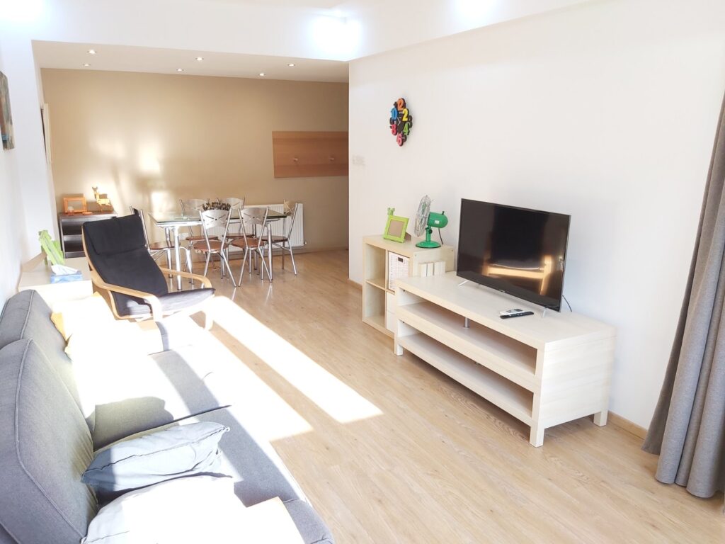 The apartment features central heating, air conditioning in all rooms, one bathroom/WC, a large veranda, and a private parking space. It is fully furnished and ready to move in as of 1st of May’2026.