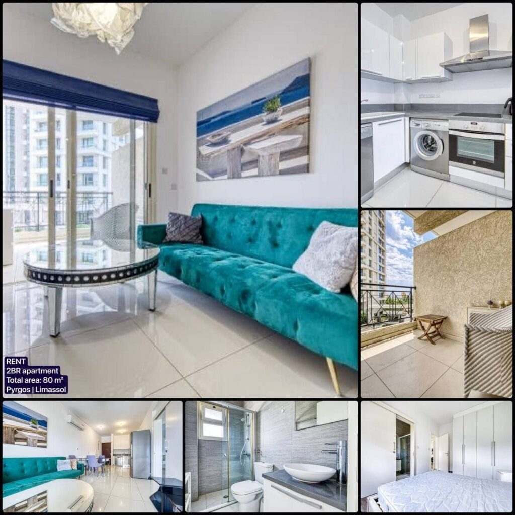 Rent 2 bedroom apartment in the Pyrgos area on the first line, Limassol. All infrastructure and the beach are within walking distance, not far from the Parklane hotel. 3rd floor Total area: 80 m² Kitchen Living room 2 bedrooms Shower rooms: 2 Veranda Parking Year of construction 2007 The complex has a pool and tennis court Pets allowed Price: 1,600 + extra common expenses