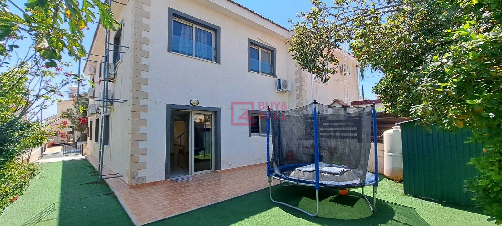 – Outdoor Oasis: The rear of the house opens up to a lovely garden with synthetic grass, perfect for relaxation and outdoor activities. The side of the house offers two uncovered parking spaces.