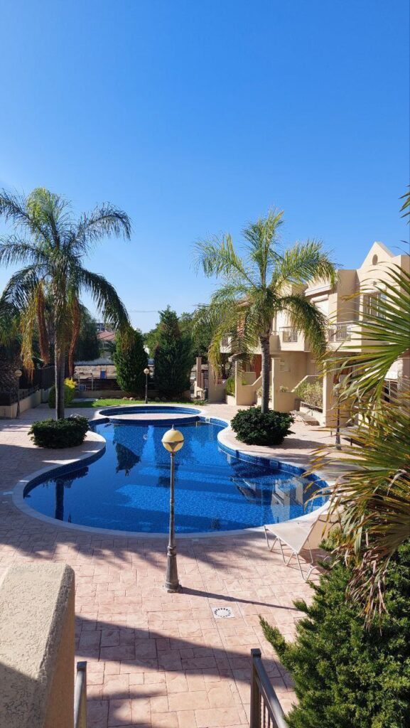 RENT – Limassol – Germasogeia. Owner. 2-story maisonette, 104 sq.m. 2 bedrooms, 2 bathrooms, 2 pools. Furnished. Parking. Sea – 350 m. 1795 euros + deposit. +35796116808