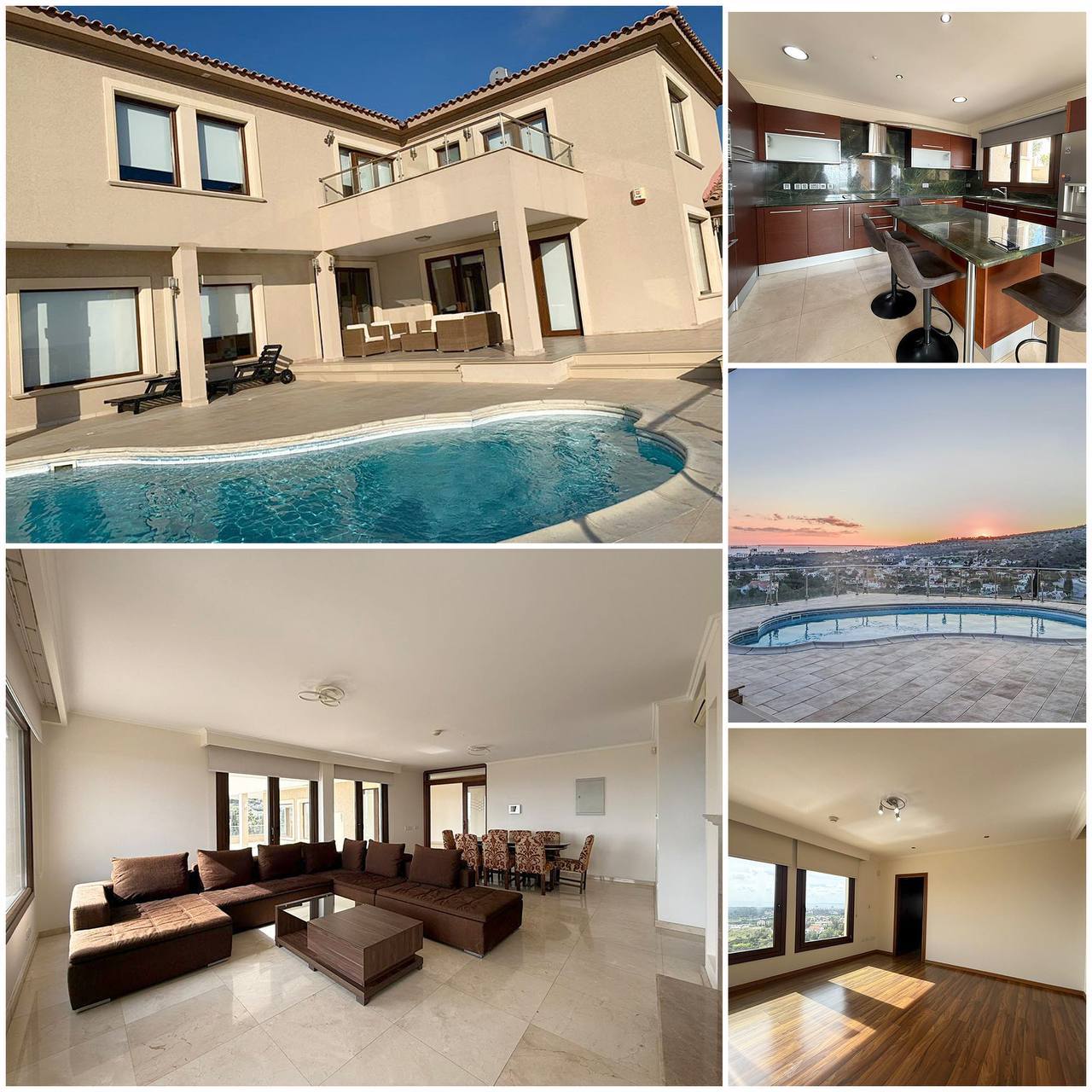 5182 RENT Limassol Villa Location: Agios Tychonas beyond the highway Sea view 3 bedrooms + study + guest room with its own kitchen and bathroom 3 bathrooms 2 living rooms Air conditioners Balcony Pool Covered parking, 4 spaces Price 10000€ LN56,RN186