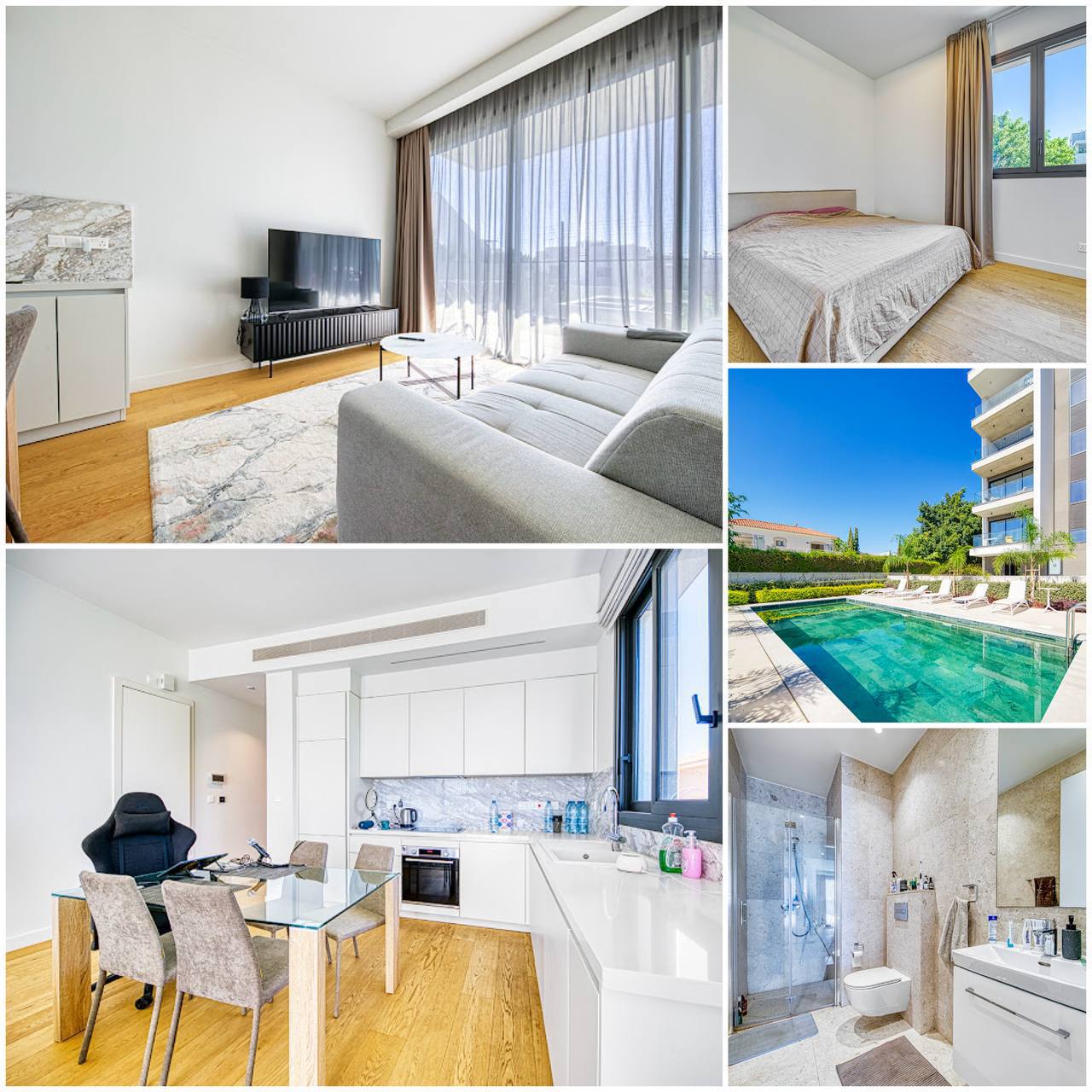4309 RENT Limassol Apartment 58m2 Location: Agios Athanasios Sea within walking distance Not far from Dasoudi Floor: 2 1 bedroom 1 shower Air conditioning VRV Heated floor Balcony Storage room Pool in the complex Covered parking Price 2400€ (+common) 2 deposits LN56,RN186