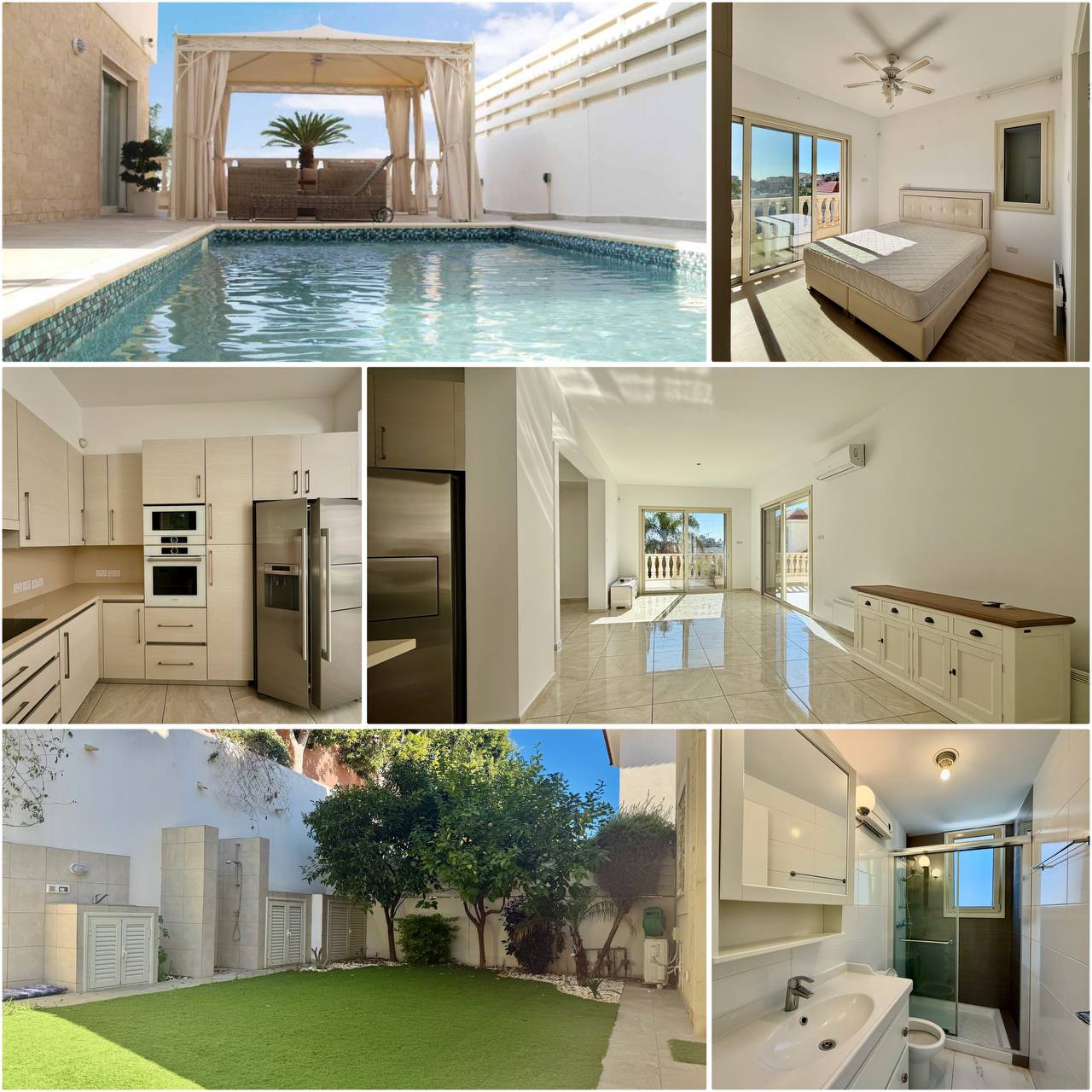 RN 742, Lic378/E. Rent, Limassol, Mouttagiaka. Villa 272 m², quiet prestigious area, 4 bedrooms, 3 bathrooms + WC, pool, garden, garage, plot 327 m². €3,500.