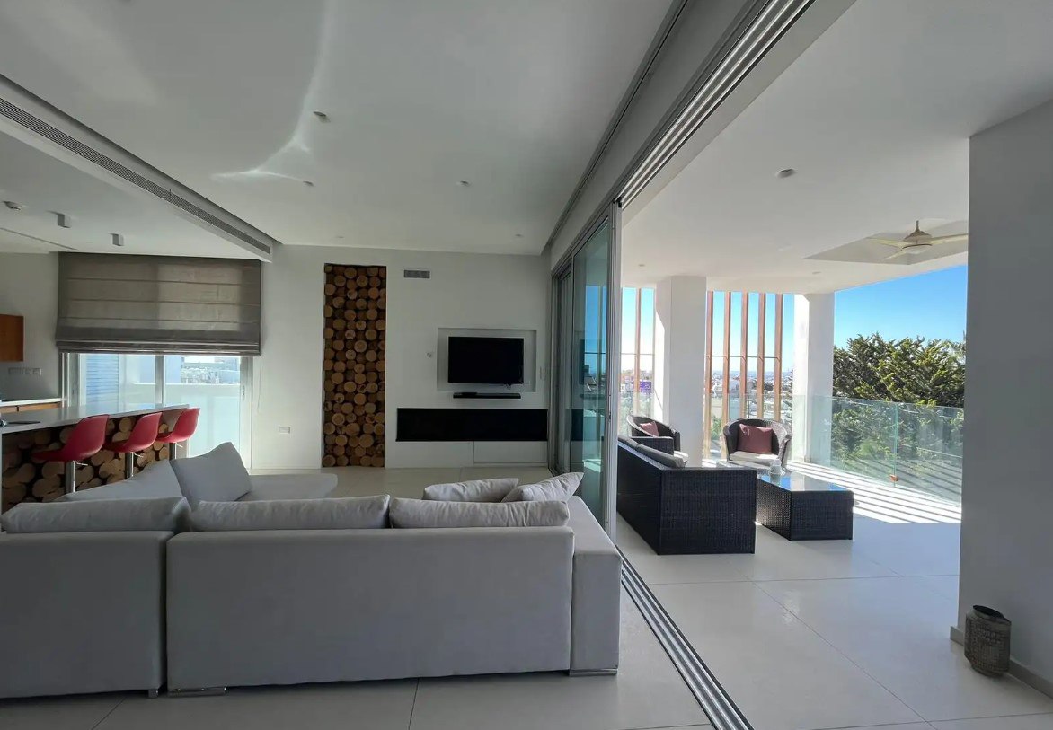 Rent – 3 bedroom apartment. Mesa Geitonia. 150m2. Underfloor heating. 3 bathrooms. Sea view. 2 parking spaces. Price 2550 euros.