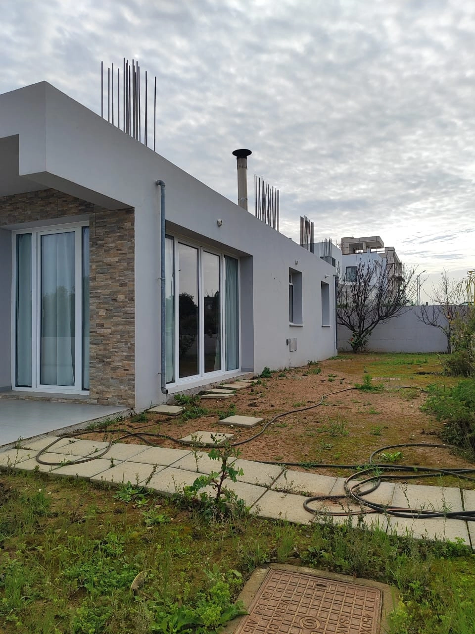 For rent: A modern detached house in Acheleia, offering 130 m² of comfortable living space all on the ground floor. This stylish home features three spacious bedrooms and two contemporary bathrooms, making it ideal for families or professionals seeking comfort and privacy.