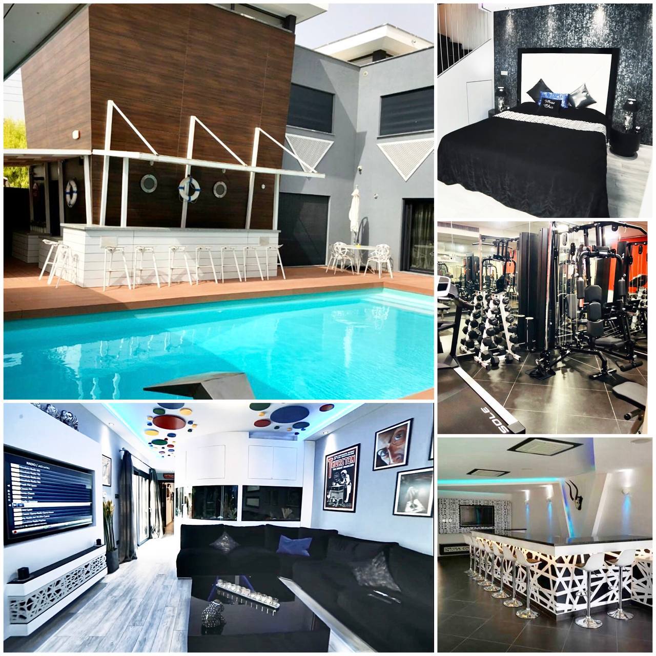 5160 RENT Limassol. Villa 376m2. Location: Kolossi. Year built 2015. Plot area 610m2. 2 levels. 7 bedrooms. 5 bathrooms. Air conditioners. Wardrobe. Pantry. Gym. Pool. Jacuzzi. Sauna. Pool bar and indoor bar. Video surveillance system. Alarm. Waterfall. 3 aquariums. Covered parking. Price 6850€ (includes pool and aquarium maintenance). LN56,RN186
