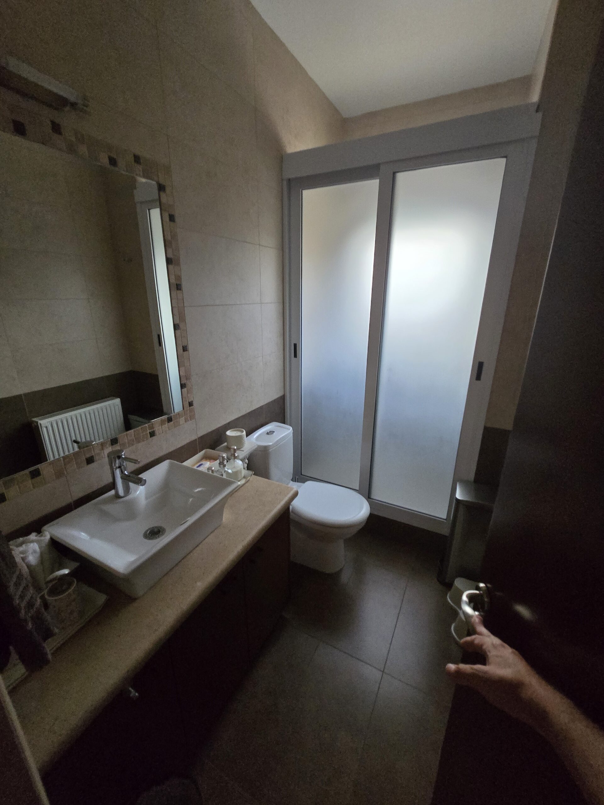 Bright and spacious living room with two seating areas and a home cinema system, ideal for family time or entertaining guests Elegant dining area with full furniture set Fully equipped family kitchen with seating area and appliances (dishwasher, microwave, refrigerator, air fryer, and additional equipment) Room with secondary auxiliary kitchenBathroom with shower