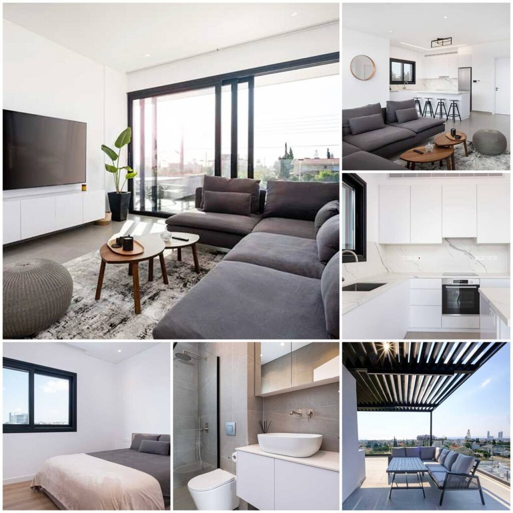 3159 RENT Limassol Penthouse 170m2 Location: Columbia Year built 2022 Floor:3 2 bedrooms 2 bathrooms VRV air conditioning Balcony Rooftop terrace Elevator Storage Covered parking Price 2900€