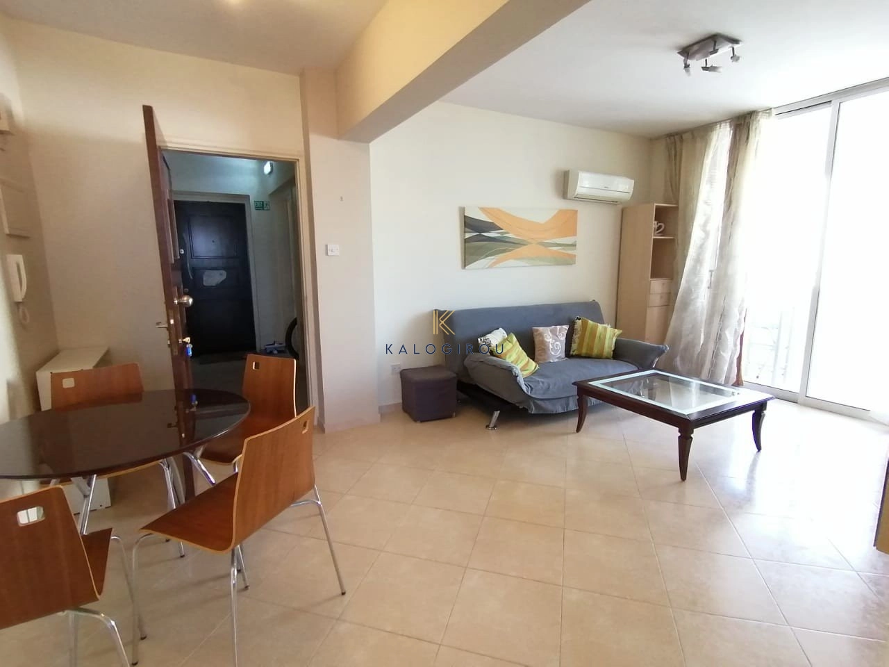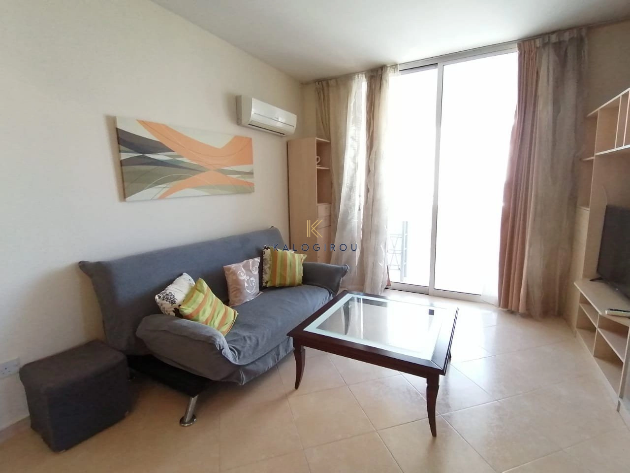 Apartment for rent in McDonald Drive Thru area, Larnaca. The property consists of one bedroom, open plan kitchen, living room, 1 shower, 1wc and uncovered parking. It also has A/C units, electrical appliances, double glasses and covered veranda.