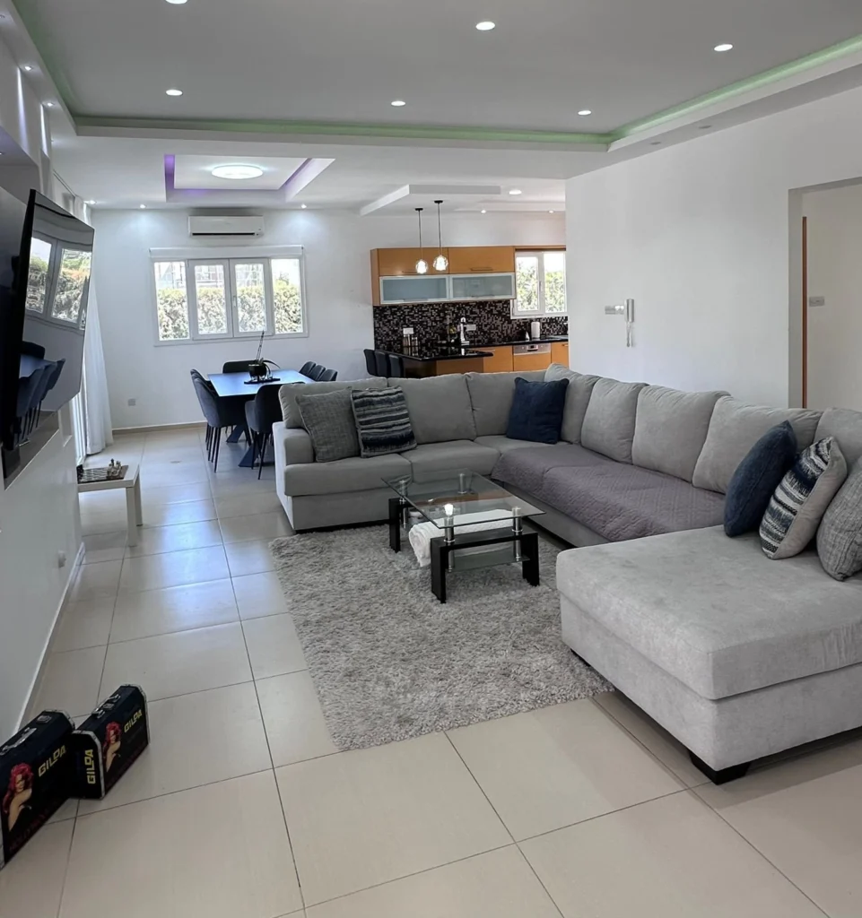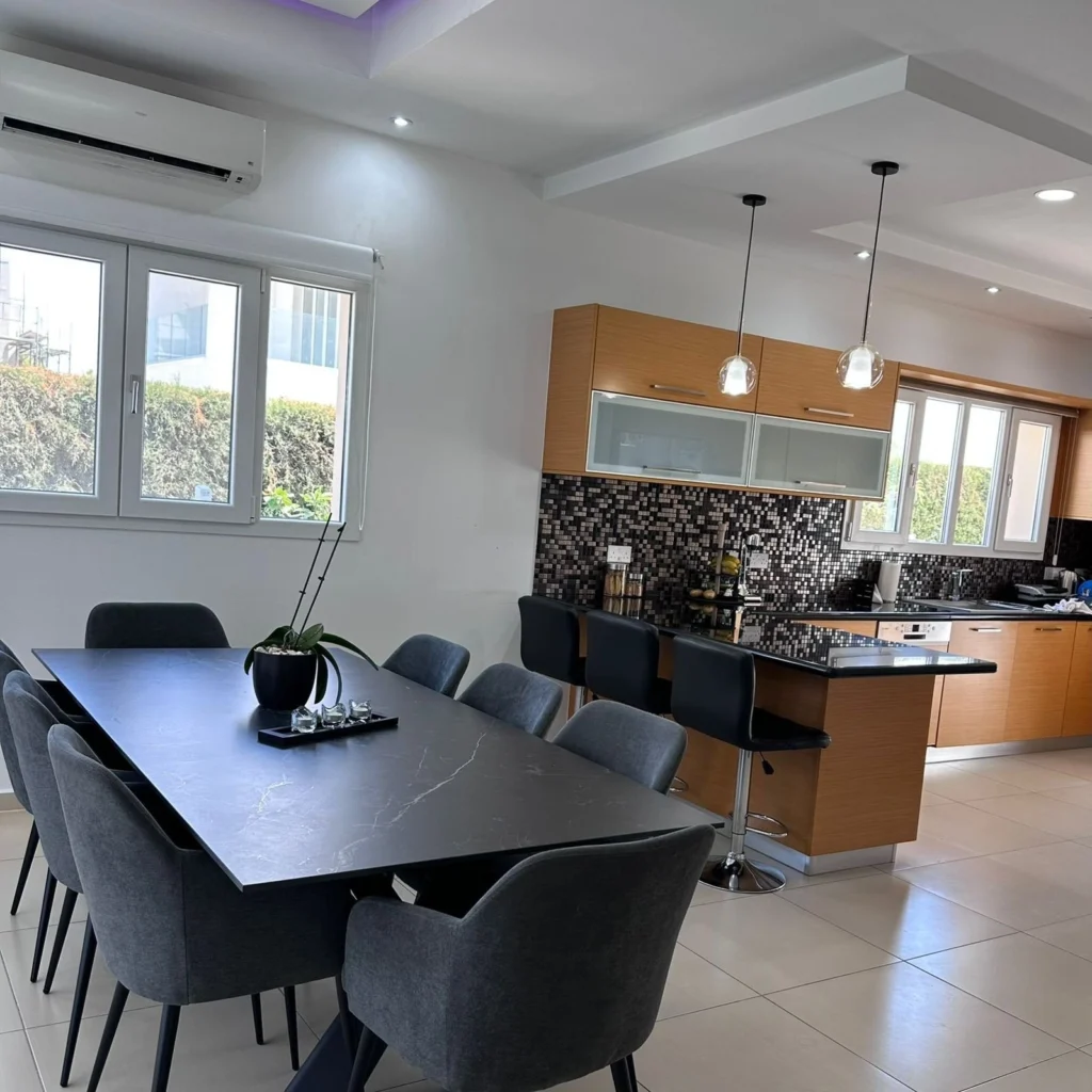 This 5-bedroom villa in Agios Tychonas, Limassol is available for rent, offering spacious living areas, modern comforts, and beautiful views of the surrounding mountains. Built in 2012 and fully renovated in 2023, the property combines contemporary upgrades with a practical and elegant design.