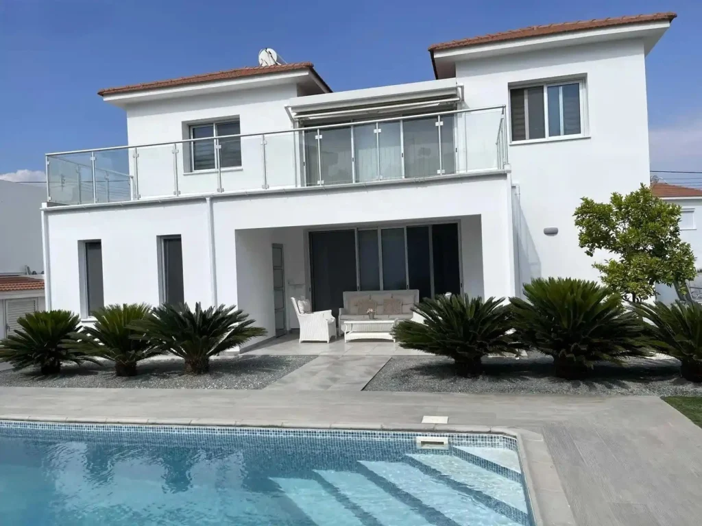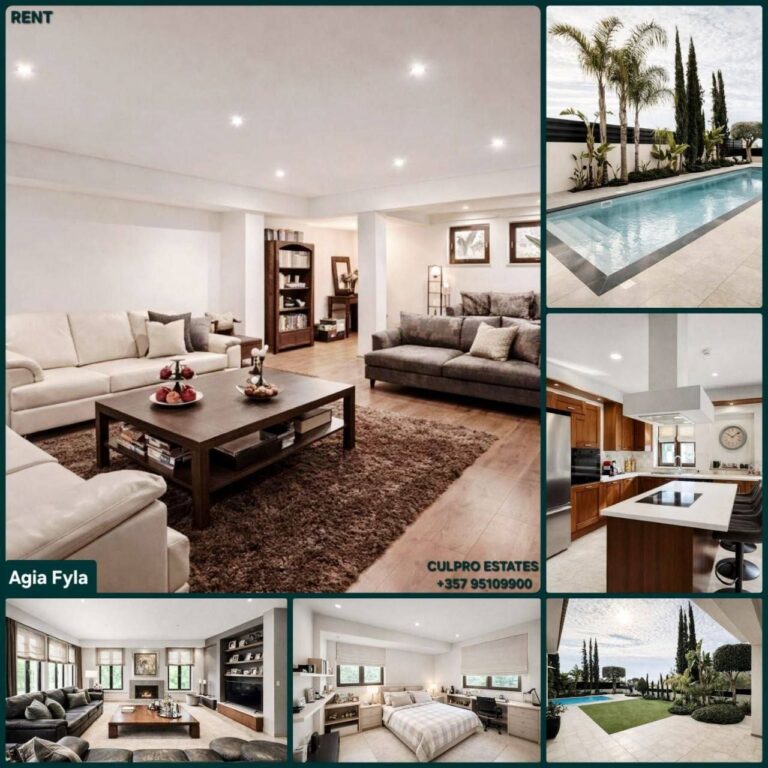 This 5-bedroom villa in Parekklisia, Limassol is available for rent, combining privacy, comfort, and a peaceful residential setting on a large plot with a beautifully landscaped garden.
