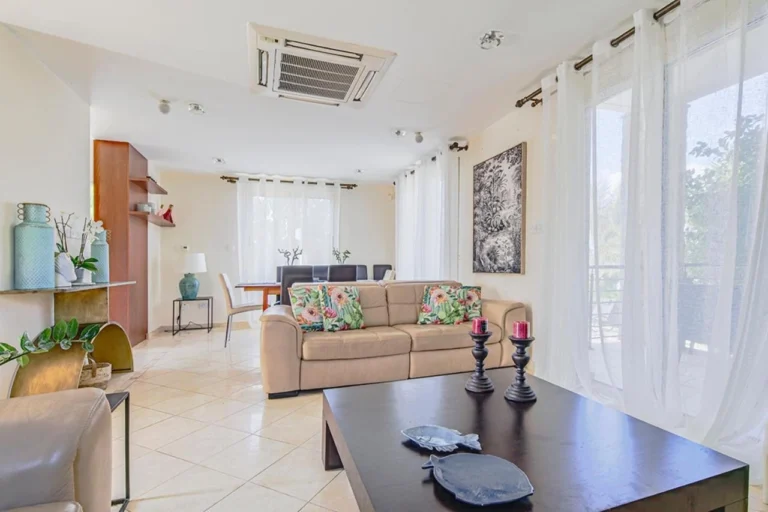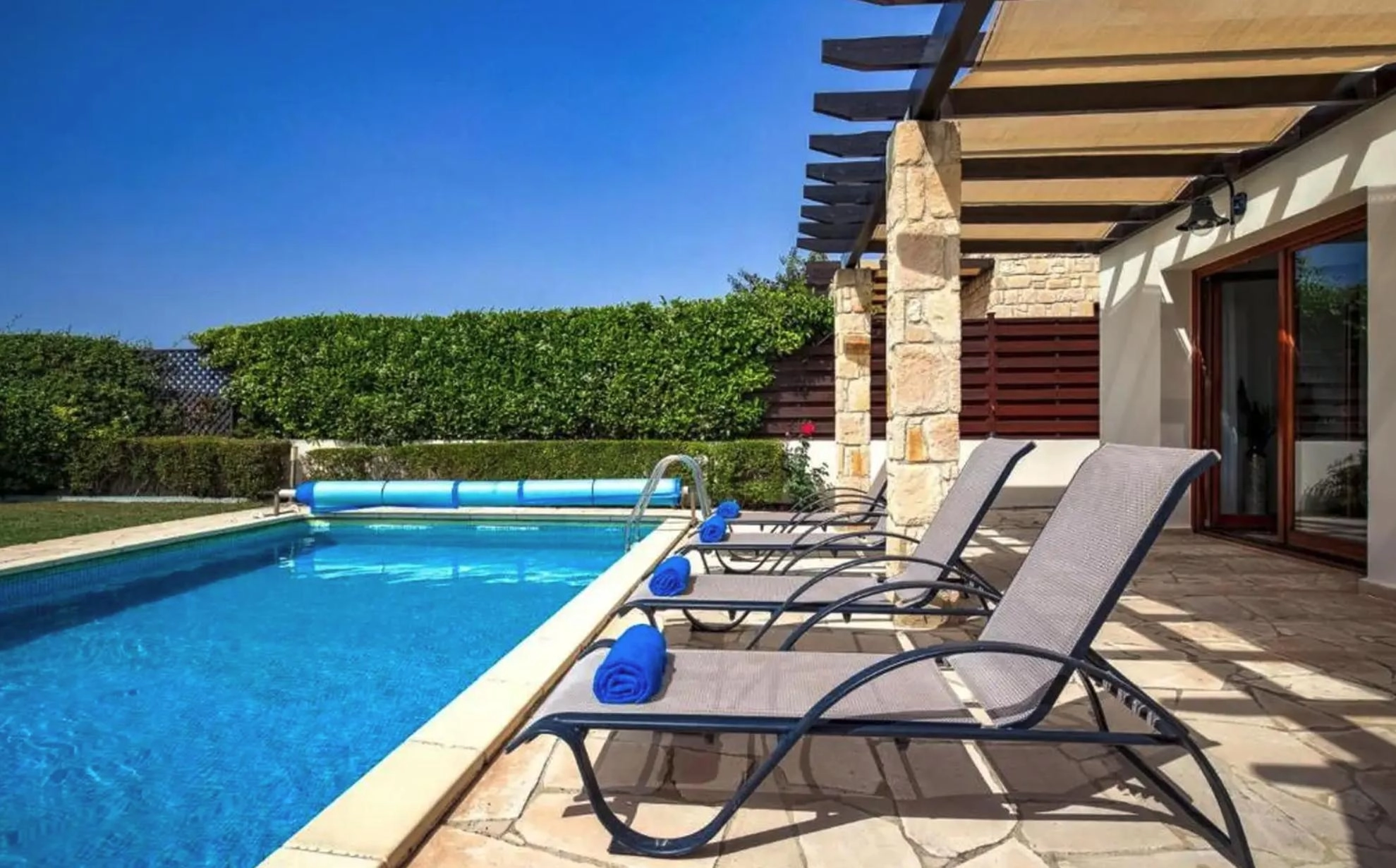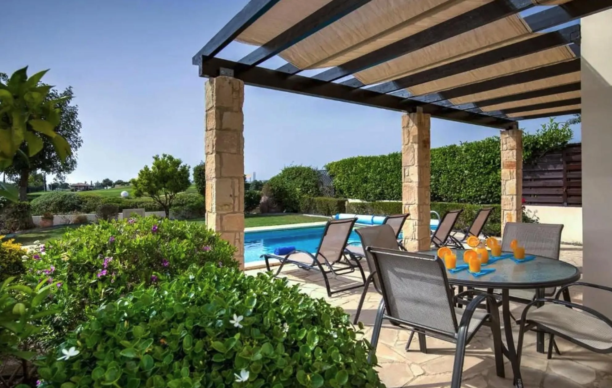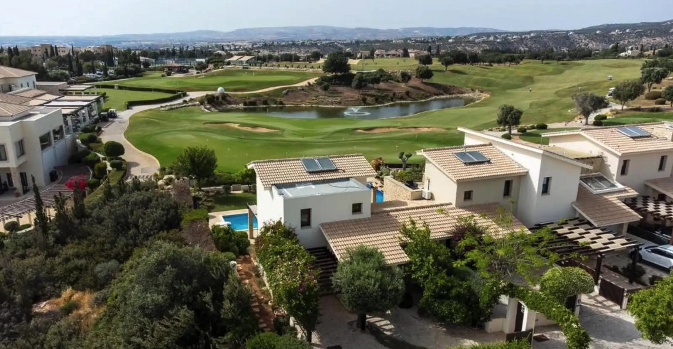A luxurious three-bedroom villa located in the prestigious resort complex Aphrodite Hills (Hestiades Greens Village area) offers a high level of comfort, privacy, and a magnificent view of the golf course. The villa is fully furnished and equipped with everything necessary for comfortable living. Inside there are three spacious bedrooms and two modern bathrooms, as well as a storage room for additional space. On the villa’s territory there is a private heated swimming pool and a well-maintained relaxation area with sun loungers, ideal for relaxing and hosting guests. The convenient location allows you to reach a supermarket, pharmacy, restaurants, and the golf club within just one minute on foot. The quiet and exclusive area makes this property an excellent choice for professionals, expats, or those looking for a comfortable and prestigious lifestyle in one of the most popular resorts in Cyprus.