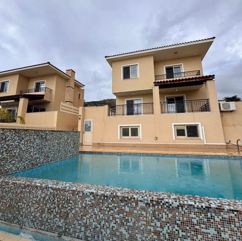For rent a three-bedroom villa of 170 m2 on a plot of 420 m2 in the area of Pegeia, Paphos. The villa includes 3 spacious bedrooms, including a master bedroom with a private bathroom, a dressing area and a balcony, a separate studio with a kitchen and a shower room, an open-plan kitchen with a breakfast bar, a living room, a dining area, covered and open verandas. The residence is equipped with underfloor heating, air conditioning in all rooms, ceiling fans, a central dust extraction system, double-glazed windows with mosquito nets and blinds, granite flooring, modern Italian cabinets, a solar system for heating water, a filtration system and a 300 liter hot water tank. The property is located in a prestigious residential area with sea views. There is a private fenced plot with a garden, covered parking, as well as an overflow pool measuring 9 m × 4.5 m with a waterfall, the facility is easy to maintain.