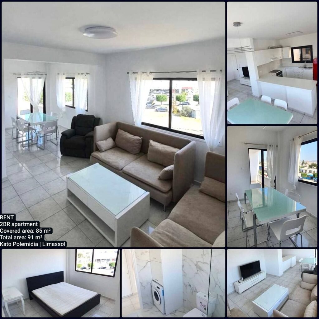 For rent 2-bedroom apartment after renovation in the Kato Polemidia area, Limassol. All infrastructure within walking distance, not far from New York Sweets. 2nd floor (top). Living area: 85 m². Total area: 91 m². Kitchen. Living room. 2 bedrooms. Shower room. Balcony: 6 m². Smart TV. Covered parking. Year of construction: 1999. Pets allowed. Price: 1,450 + extra common expenses 50. Agency CULPRO Estates Ltd L.N 197/E R.N 1189 +357 95109900 +357 95592209 A328