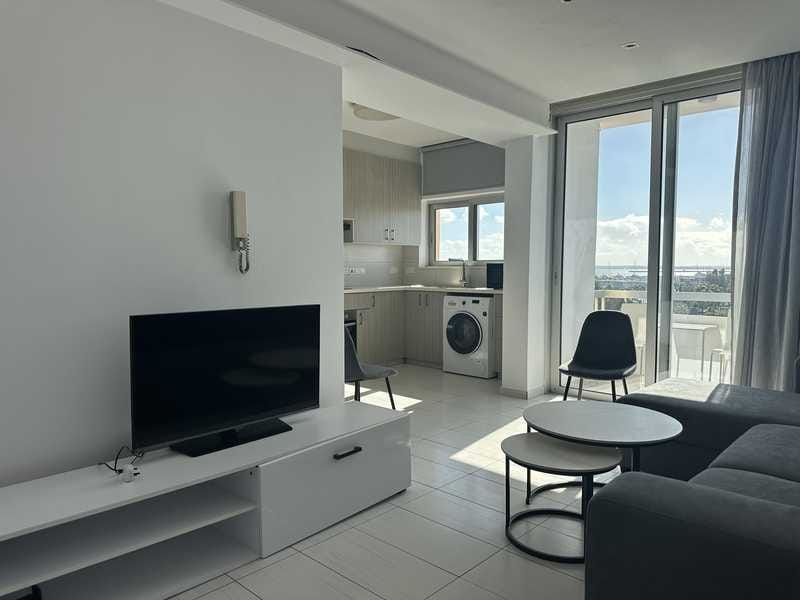 RENT apartment Agia Trias, Limassol. 2 bedrooms. 1 bathroom. 6th floor. fully furnished. air conditioners in all rooms. washing machine. public parking. balcony with sea view. no pets. Price 1500 euros + deposit. R1216 L627