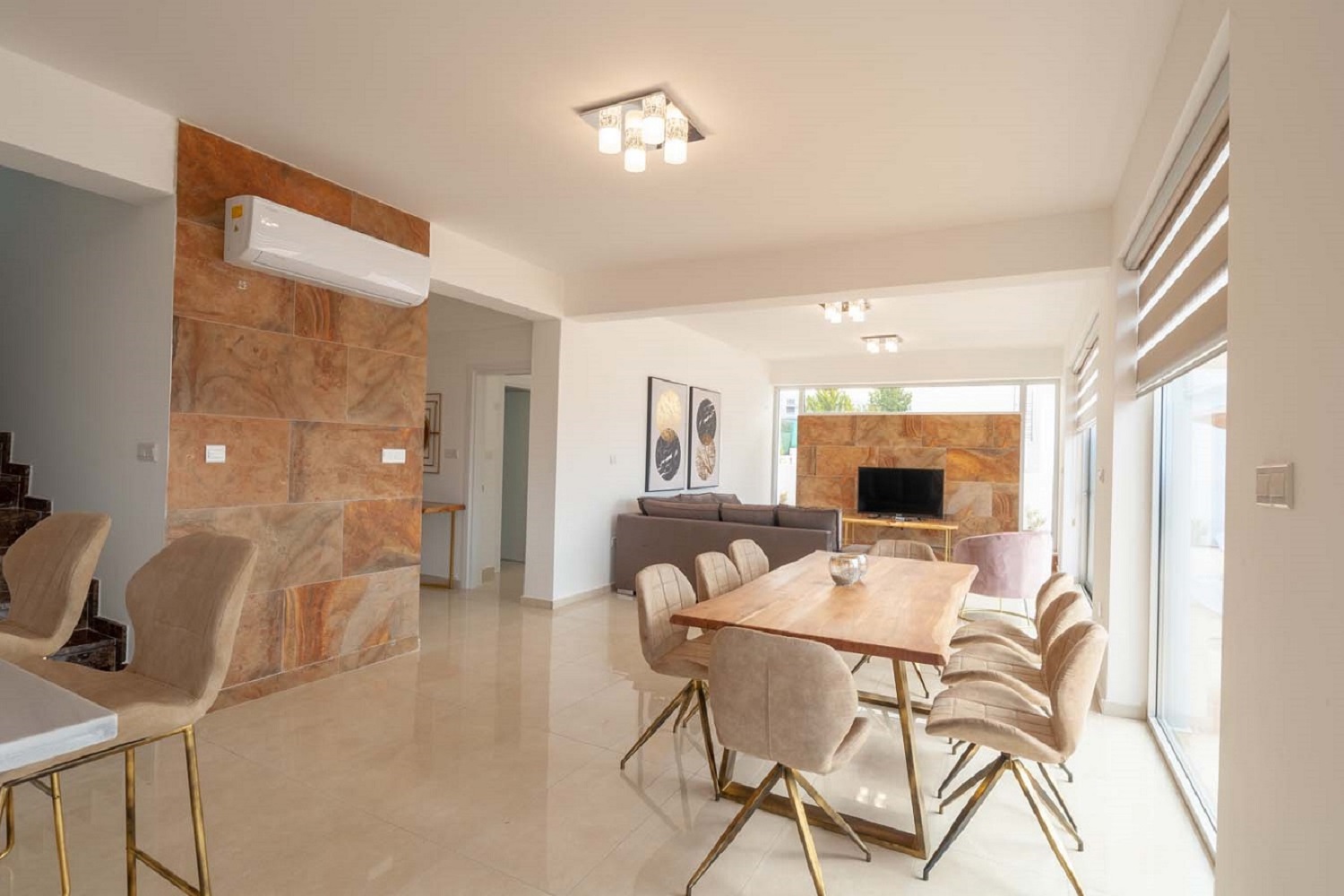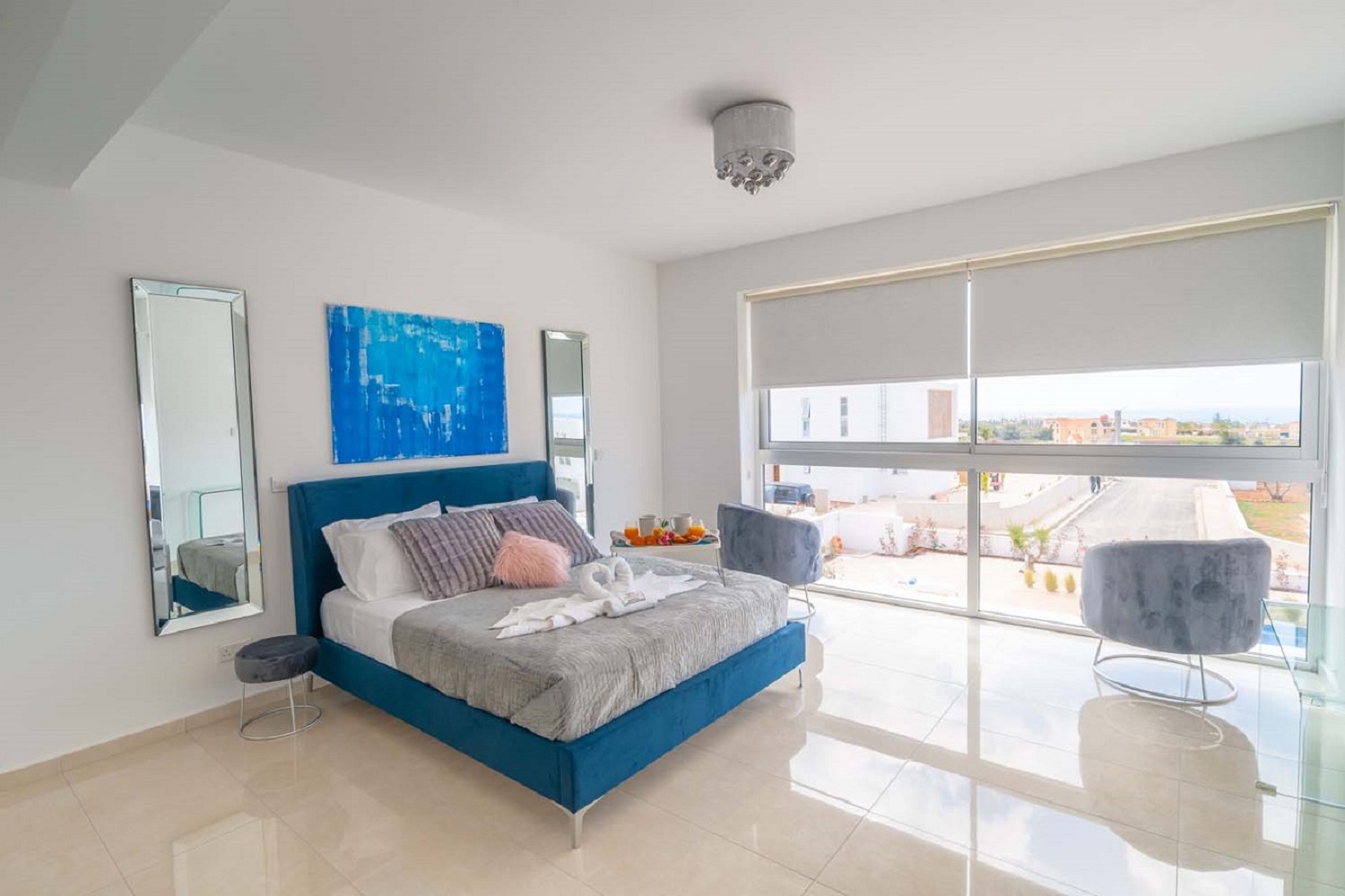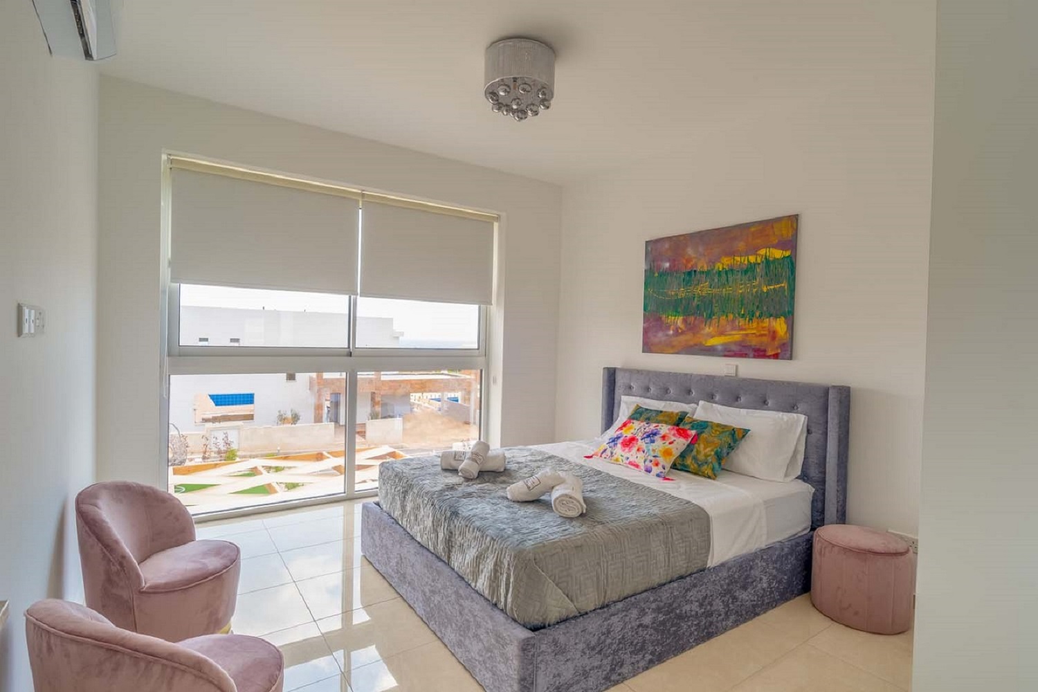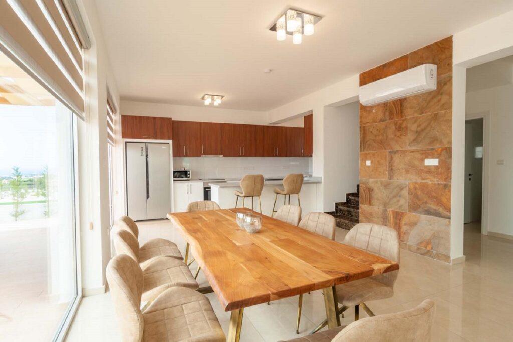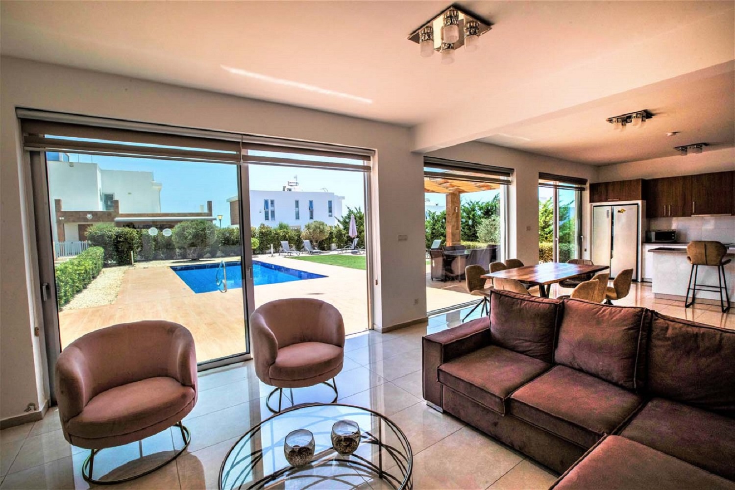 Beautiful 4-bedroom en-suite villa featuring a private pool, garden, and hot tub. Fully furnished and equipped, including a modern kitchen with dishwasher, oven, microwave, and stove. The property offers a roof terrace with sea views, air conditioning in all rooms, private entrance, and private parking, all within a secure complex. Ideally located just 2 km from Coral Bay, close to beaches and amenities. Available from November 1st. Rental price includes pool and garden maintenance.