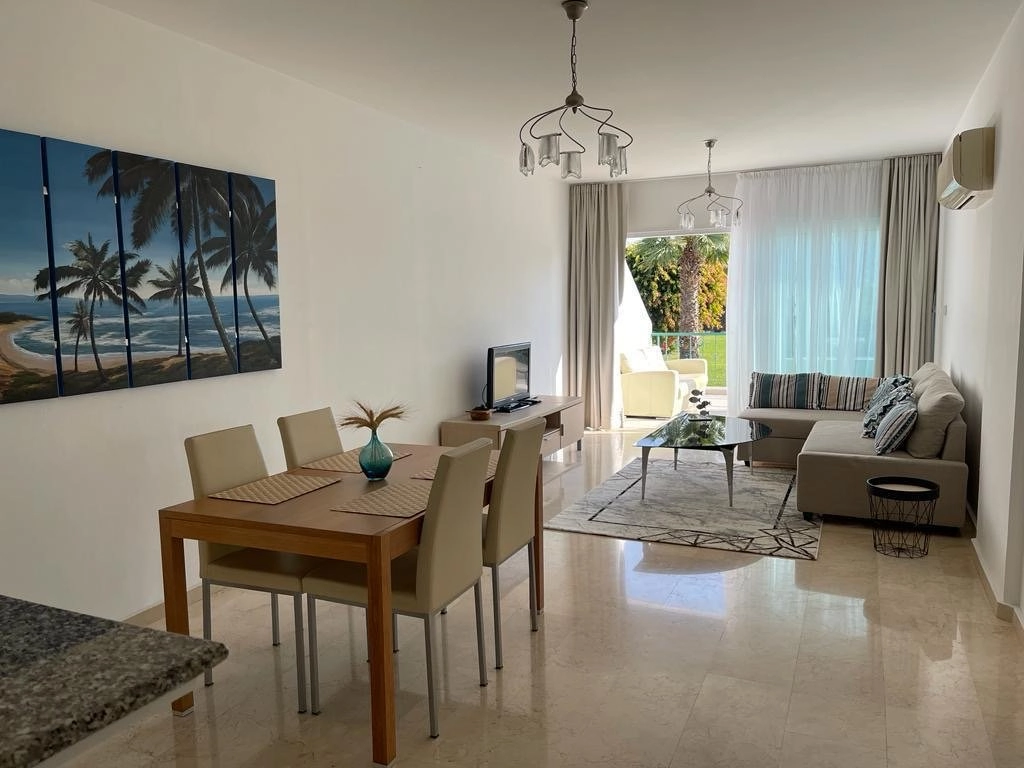 This 2-bedroom apartment in Parekklisia, Limassol is available for rent, ideally located in a well-developed coastal area, just 200 meters from the sea and directly opposite the 5-star Amara Hotel.
