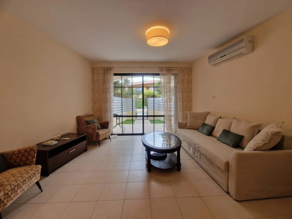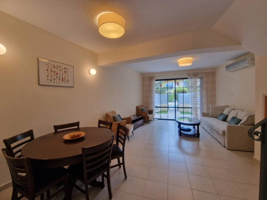 4 bedroom house for rent in Germasogeia, Limassol. The house is just a few minutes walk from the sea. In a gated complex with a communal swimming pool, playground and outdoor parking. All rooms have air conditioning, and the kitchen is equipped with household appliances. There is a parking space for 1 car.