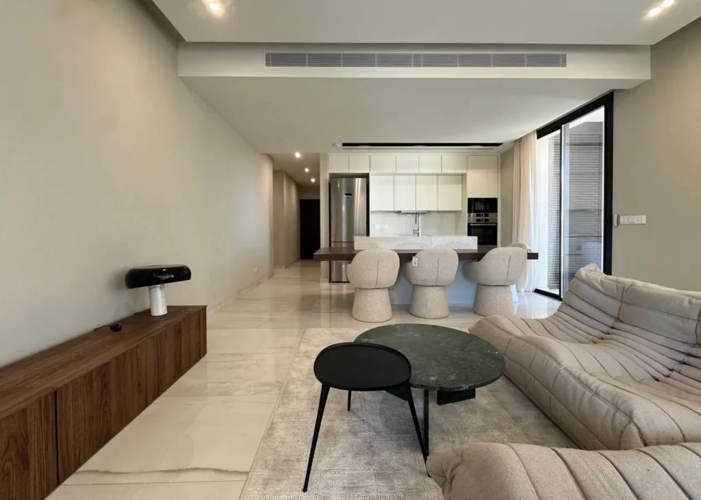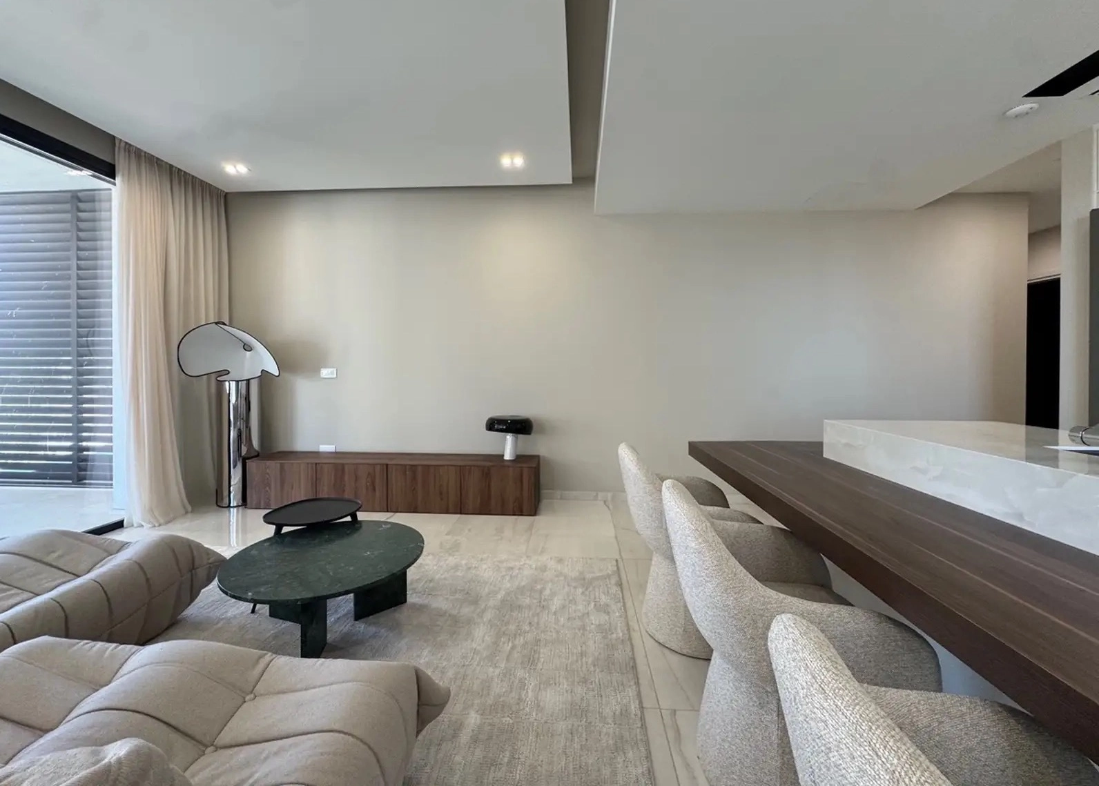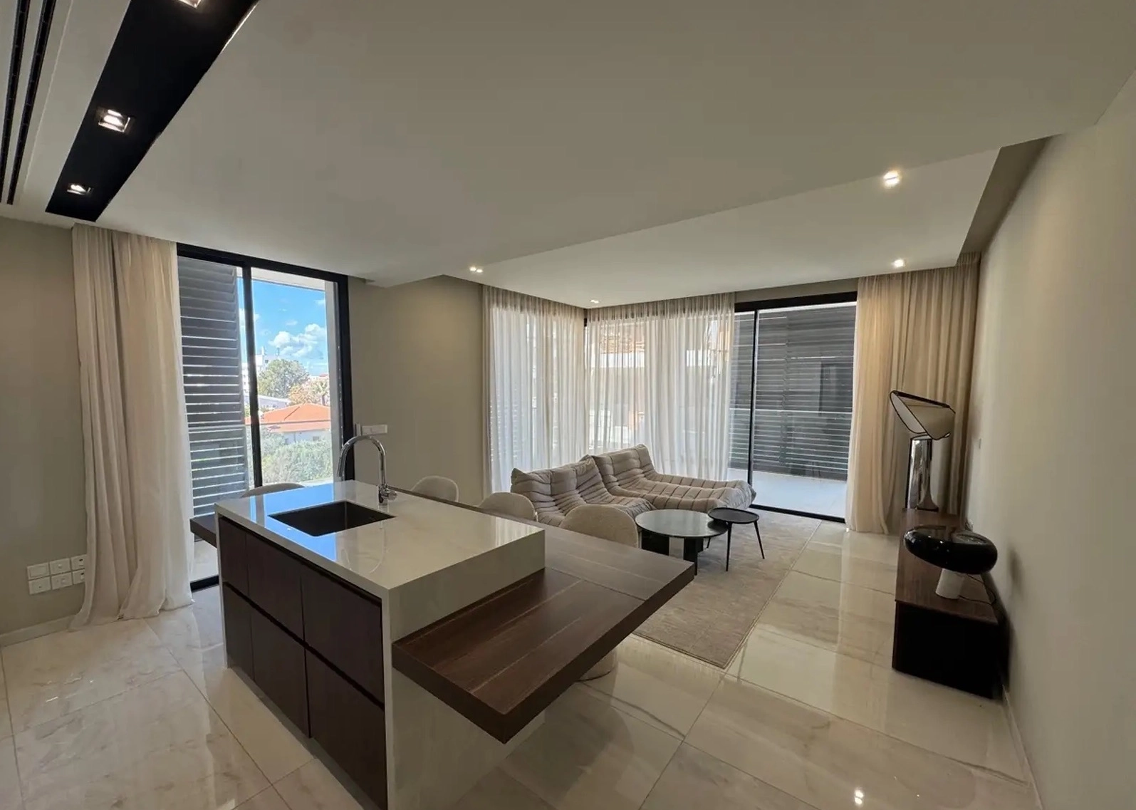 Two-bedroom apartment of 93 m2 for rent in Egkomi, Nicosia. The apartment is located on the 2nd floor and includes 2 bedrooms with private bathrooms, 3 bathrooms, a kitchen, a living room, a balcony, storage rooms and a covered parking. The apartments are partially furnished and equipped with Bosch appliances, air conditioning in all rooms, underfloor heating, alarm system, fire safety system with app control, as well as LED ceiling lights with app control. The apartment is located in a prestigious and safe area close to shops, a 5-minute drive from University of Nicosia and Mall of Engomi, a 5-minute walk from Lidl, Zorpa, gym and Pilates Studio, a 7-minute walk from pharmacy and a 10-minute walk from Alpha Mega and Cafe Nero. The property is located in a new building built in 2024, opposite, construction is underway, which is nearing completion, while the housing is equipped with high-quality soundproof windows and is characterized by a high level of comfort and safety.