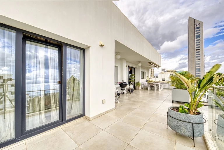 This 3-bedroom penthouse in Agia Zoni, Limassol is available for rent, ideally located in the city centre, opposite the Grammar School and within walking distance of Morfosis School.