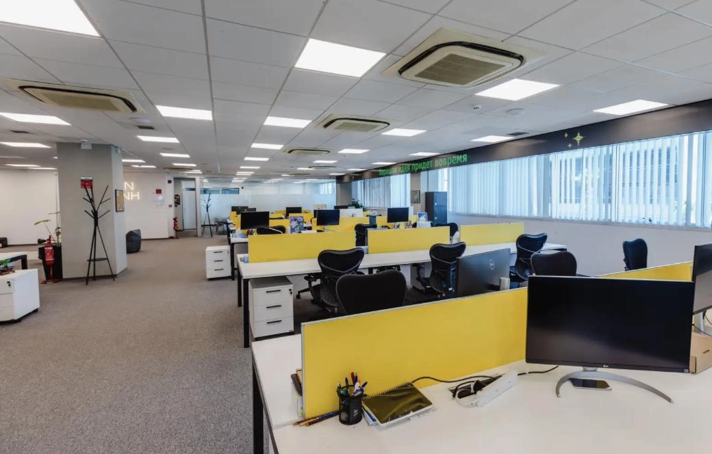 Office space of 809 m2 for rent in the area of Agios Athanasios, Limassol. The office includes work spaces, open space areas, auxiliary rooms, 9 parking spaces and storerooms with a total area of 67 m2. The commercial space is equipped with an air conditioning system, an LED lighting automation system, a fire alarm system and a CCTV surveillance system, as well as an alarm system and an elevator in the building. Additionally, it is possible to sell all office furniture and equipment with the organization of a fully turnkey solution by agreement.
