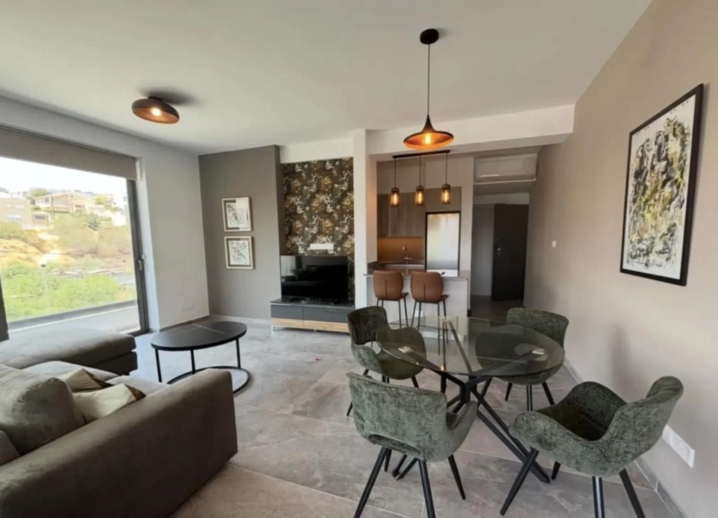 Two-bedroom apartment of 105 m2 for rent in Agia Fyla, Limassol. The apartment includes 2 bedrooms, 1 bathroom, a guest bathroom, an open-plan kitchen with a dining area and a living room, a spacious balcony, and a storage room. The apartment is fully furnished, equipped with household appliances and engineering systems, including BOSCH air conditioners with WiFi in all rooms, solar panels, an electric boiler, a security system with digital locks and CCTV cameras. The apartment is located next to the Mediterranean Hospital, near the park across the street, with convenient access to the highway, private schools and all necessary infrastructure. The facility is located in a modern residential complex built in 2024 with an elevator, garden and covered parking, has high-quality finishes and energy efficiency class A, and is available for occupancy from June 7.