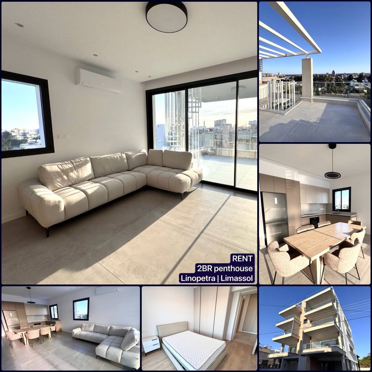 For rent. Available new 2-bedroom penthouse in the Linopetra area, Limassol. All infrastructure within walking distance, not far from Cyta on Kolonakiou. 2 floors. Sea view. Living area: 85 m². Total area: 110 m² + terrace. Kitchen. Living room. 2 bedrooms. Shower room + guest toilet. Veranda: 25 m². Terrace with barbecue area. Underfloor heating. High ceilings. Storage room. Parking. Year of construction: 2026. Photovoltaics, electricity bills will be inexpensive. Price: 2,450 including common expenses + 2 deposits. Agency CULPRO ESTATES Ltd L.N 197/E R.N 1189 +357 95109900 +357 95592209 H423