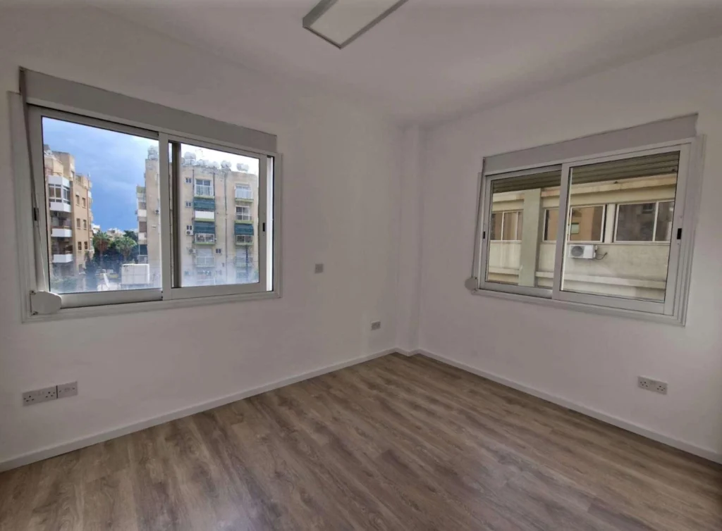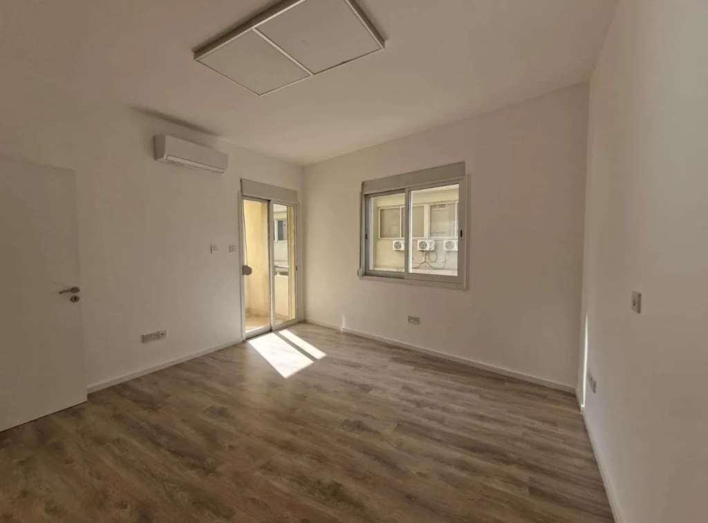 Office space of 100 m2 for rent in Neapolis, Limassol. The office includes a main work room with a kitchen area, two separate offices, a kitchen and a bathroom. This facility has been completely renovated and is equipped with laminate flooring, new air conditioners, professional office lighting and a structured cabling system. The property is located on the third floor of a building with a balcony overlooking the main street, there is one covered parking space and additional parking in front of the building.