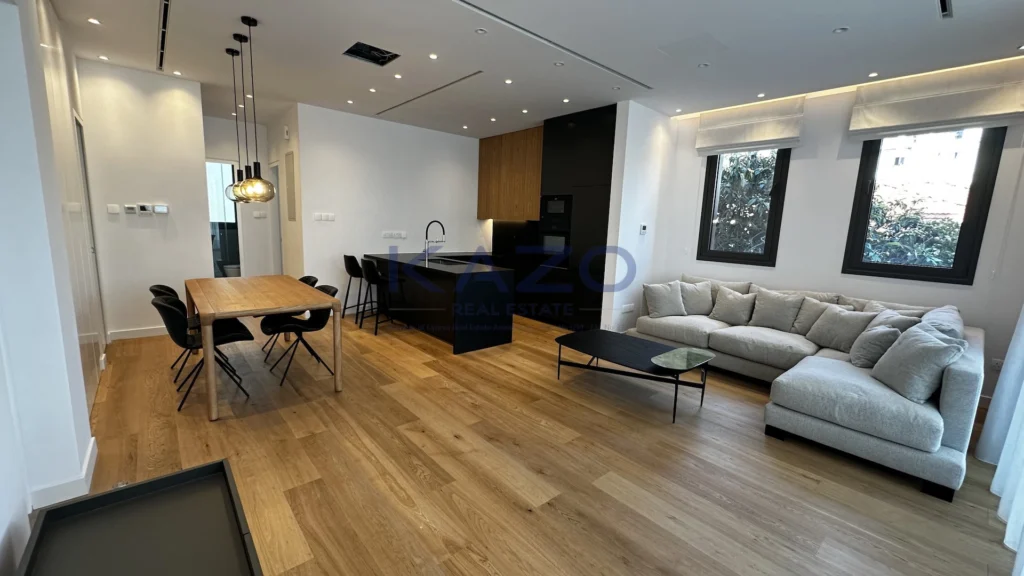 For rent: Modern two-bedroom apartment in the heart of City Center, Agia Zoni. This well-maintained 77 m² home offers a stylish living experience, featuring a bright open-plan layout. Enjoy a spacious living and dining area with large windows that provide beautiful city views. Both bedrooms are designed for comfort, and there are two contemporary bathrooms for added convenience.