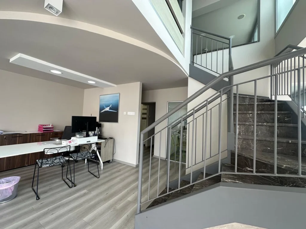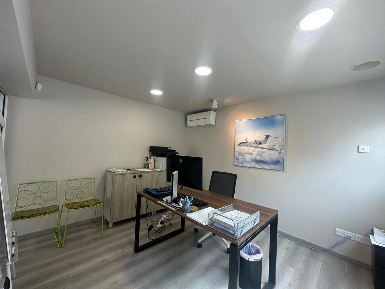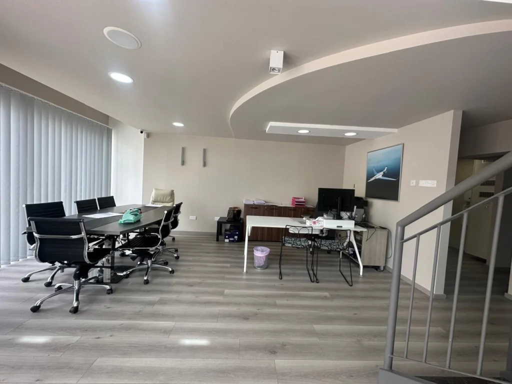 This fully furnished office offers a functional and professional workspace across two levels, connected by an internal staircase. The layout includes separate offices on both the ground and upper floors, providing flexibility for teams or departments. A dedicated conference room is ideal for meetings and presentations, while the fully equipped kitchen adds convenience for daily use. The property also features two WC facilities and a secure server room, making it well-suited for modern business operations.