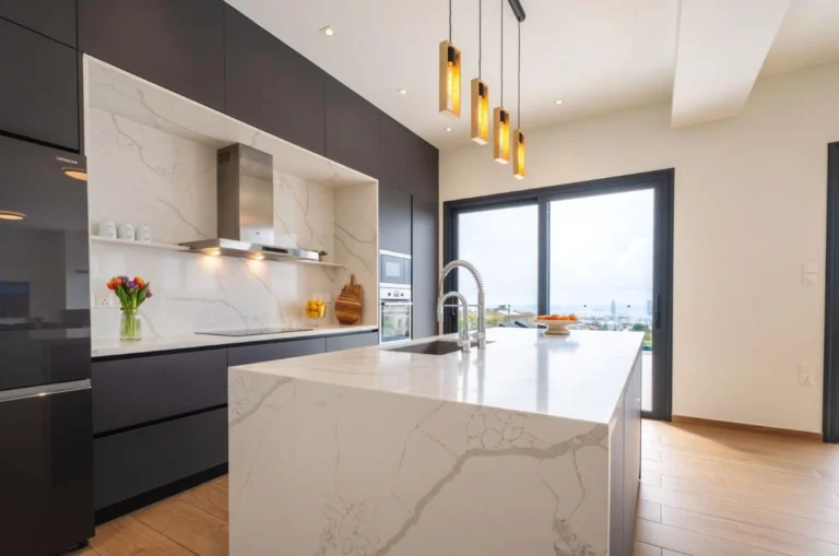 A: It is conveniently located near schools, supermarkets, pharmacies, coffee shops, the highway, the Casino, My Mall Limassol, and Ladies Mile beach.