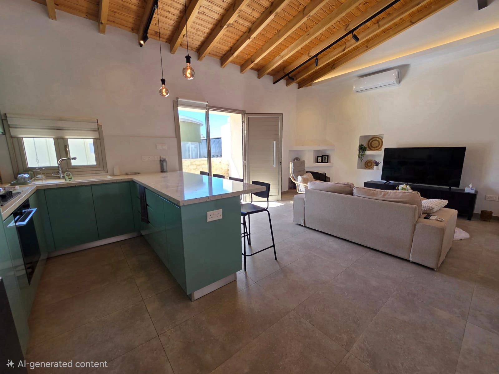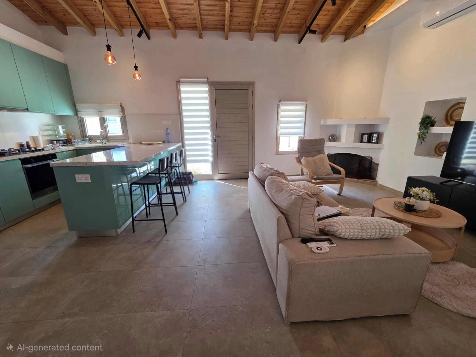 This beautifully renovated two-bedroom semi-detached home is located in the sought-after area of Ypsonas. Designed with comfort and style in mind, this charming property offers a warm and inviting atmosphere, enhanced by its elegant high beamed ceilings and thoughtfully arranged interior layout.