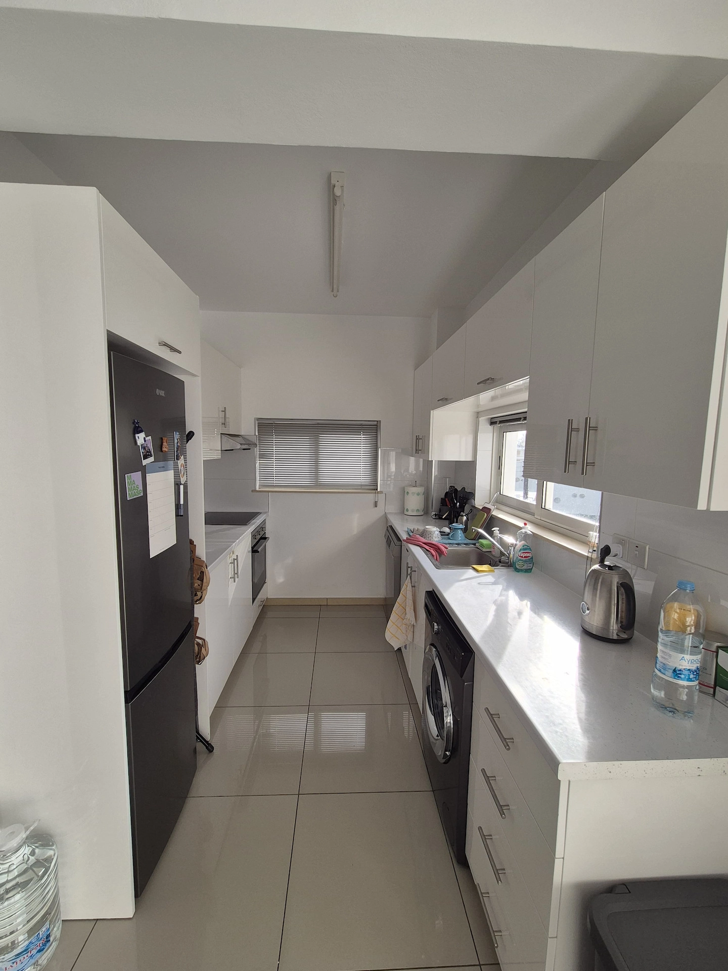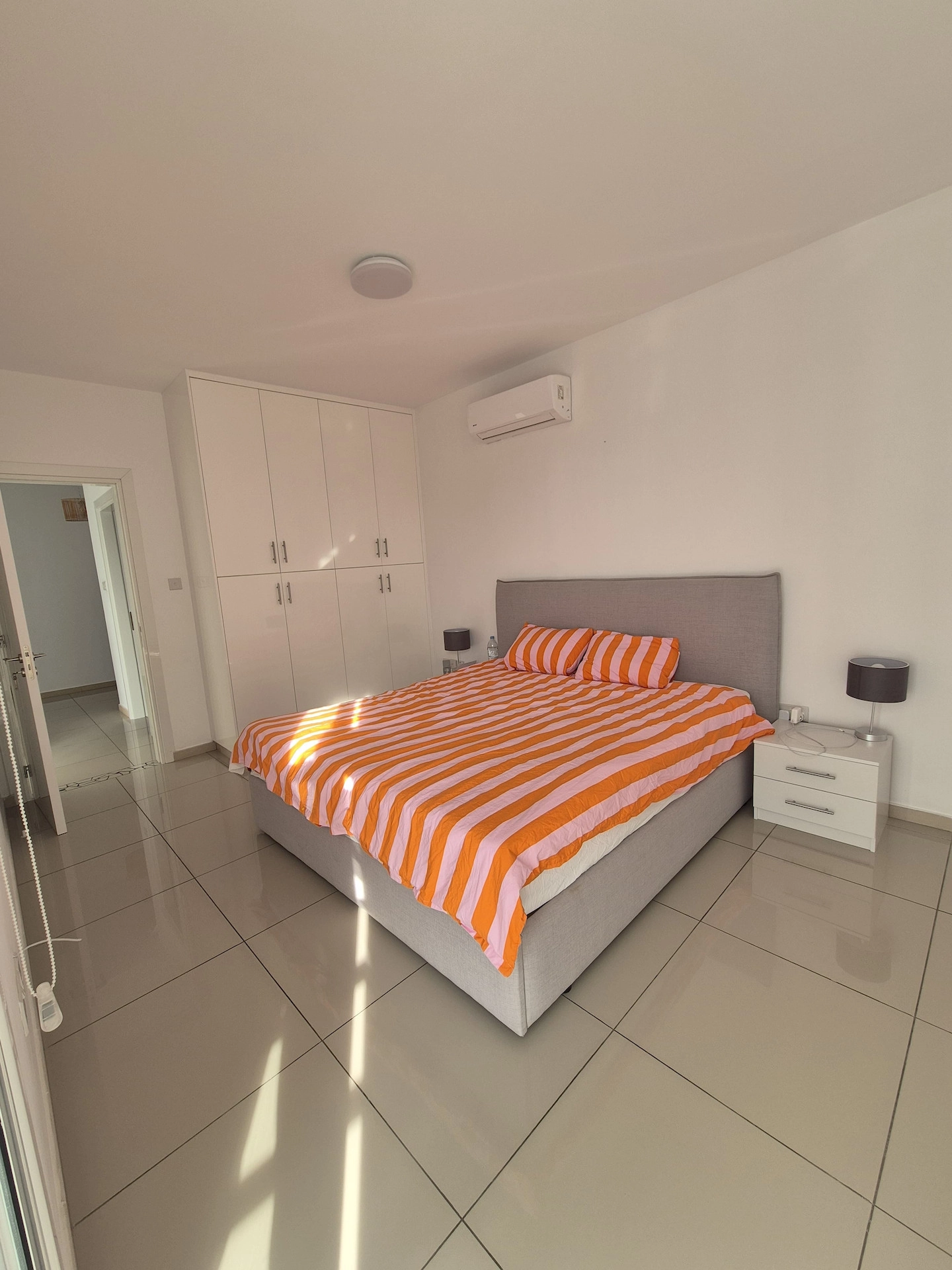 The apartment features two well-proportioned bedrooms, each with generous storage and plenty of natural light. The tastefully designed bathroom includes updated fixtures, reflecting the recent renovation. The living area is open and airy, flowing into a fully equipped kitchen with modern appliances and dining space, ideal for both relaxing and entertaining.