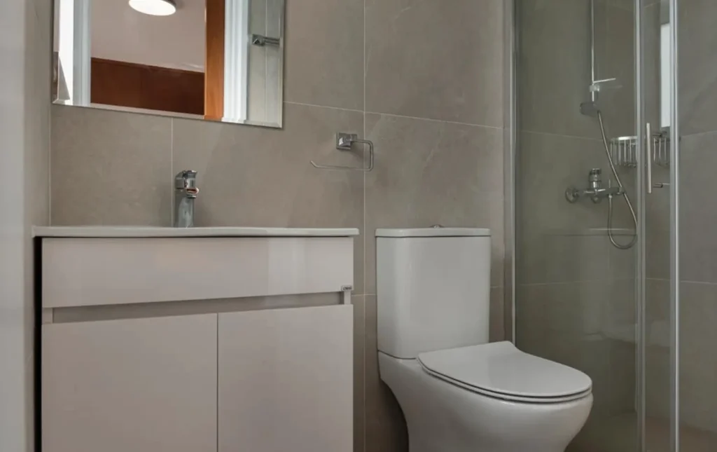 The apartment features a bright living and dining area, a fully equipped kitchen, three bedrooms, and three bathrooms, including an en-suite and a guest WC. It has been recently renovated and comes fully furnished with new furniture and electrical appliances.